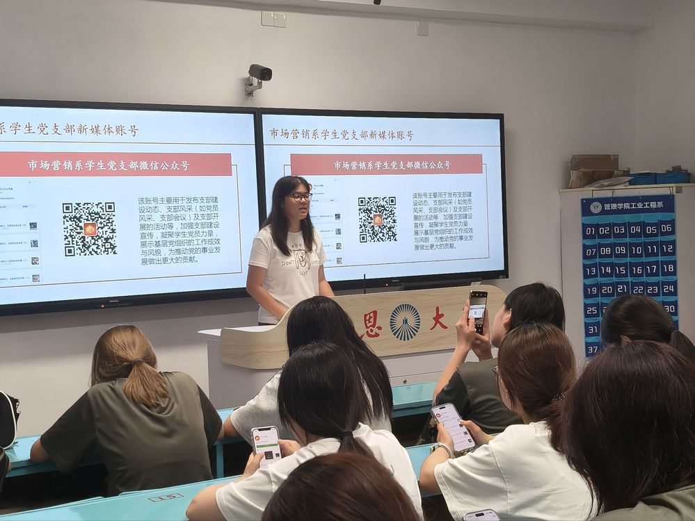 9月16日,市场营销系学生党支部在共和楼教室开展新生入党启蒙教育活动,全体党员参加。