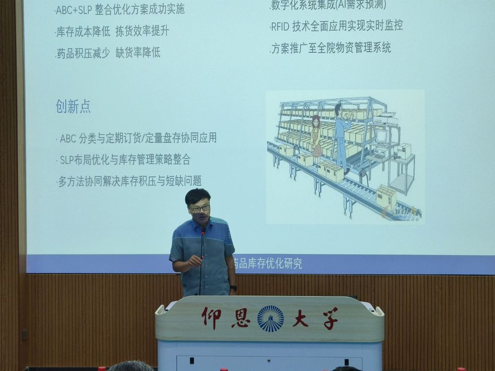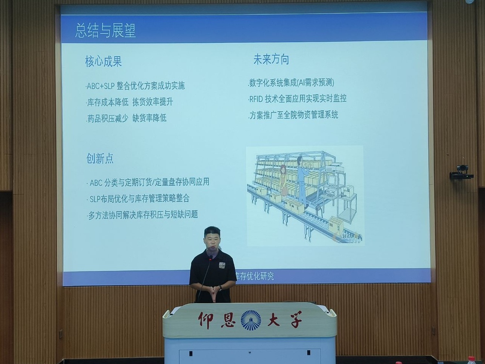 比赛现场,十一支队伍依次登台展示作品,围绕工业工程多领域场景展开深度实践探索。从“生产线的流程优化”、 “产品的质量改进”、“生产线的仿真与精益化研究”等实际场景的IE技术落地,同学们将理论知识与企业真实需求紧密结合,以逻辑清晰的阐述、创新务实的方案,生动展现了工业工程学科“解决实际问题、驱动效率提升”的核心价值。赛后,胡常伟老师发表总结讲话,肯定了各参赛队伍的创新实践能力,同时也鼓励大家以本次比赛为起点,持续关注行业动态,在后续学习中进一步锤炼解决复杂问题的能力,努力成长为能为产业发展赋能的工业工程人才。