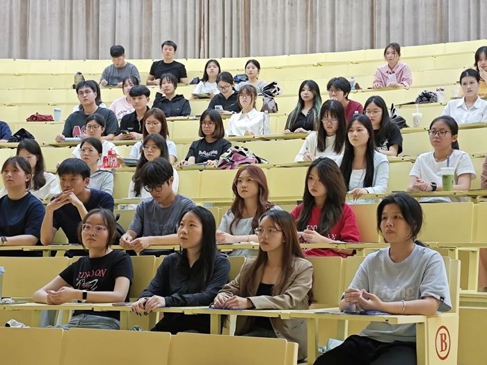 本次活动特别设置宣讲+面试双环节,为管院学子搭建了了解企业到争取入职机会的一站式就业服务。宣讲会伊始,负责人详细介绍了品牌的发展历程、全球业务布局以及在运动时尚领域的行业地位。这让管院学子对斐乐的品牌基因与行业价值有了更深刻的认知。同时,活动特别邀请两位管院优秀校友进行经验分享,让在场同学对斐乐工作场景与职业发展有了更直观的认知。