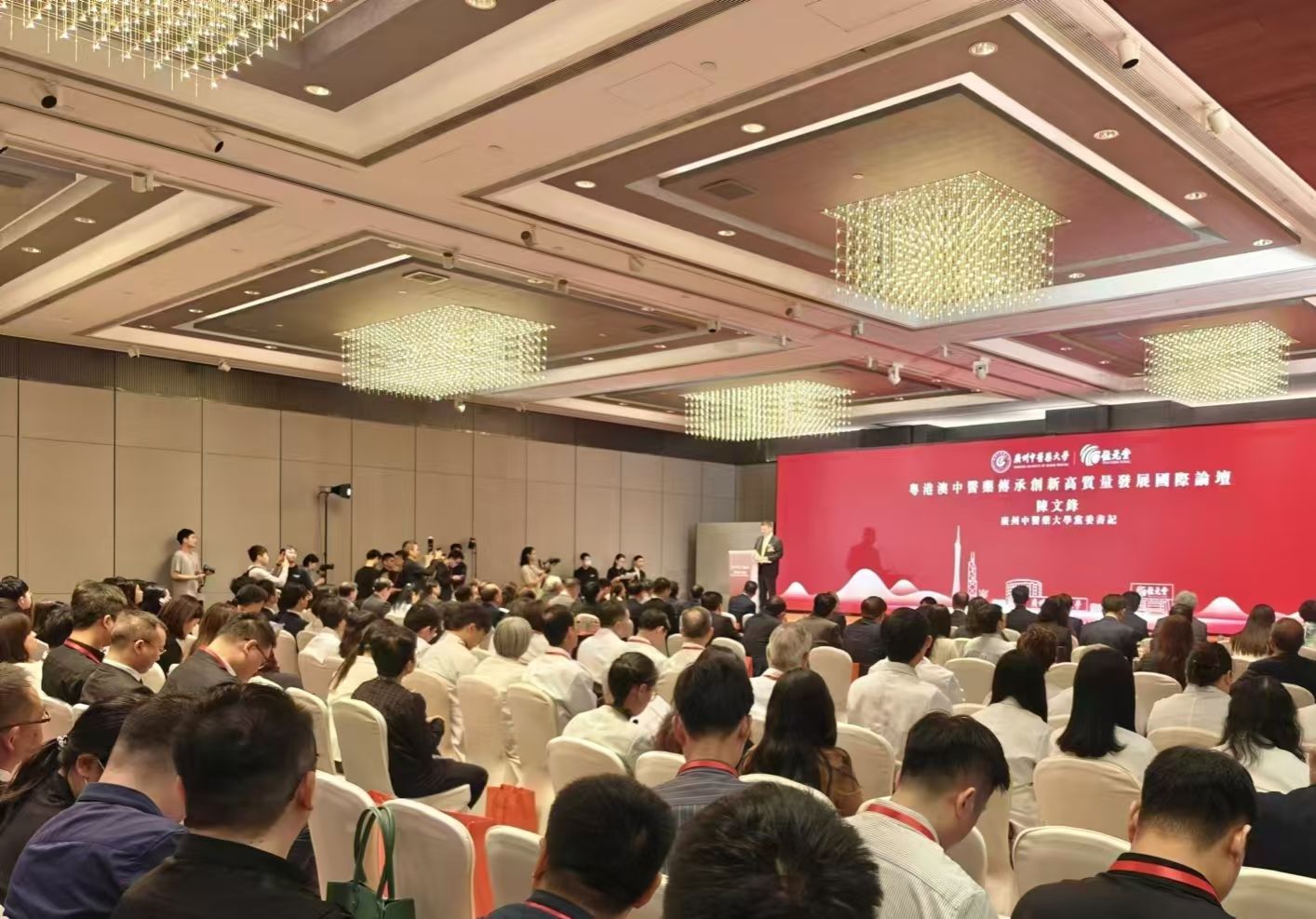 在beat365官方网站百年校庆前夕,10月20日,由beat365官方网站与香港位元堂共同主办的粤港澳中医药传承创新高质量发展国际论坛在香港金钟万豪酒店举办。