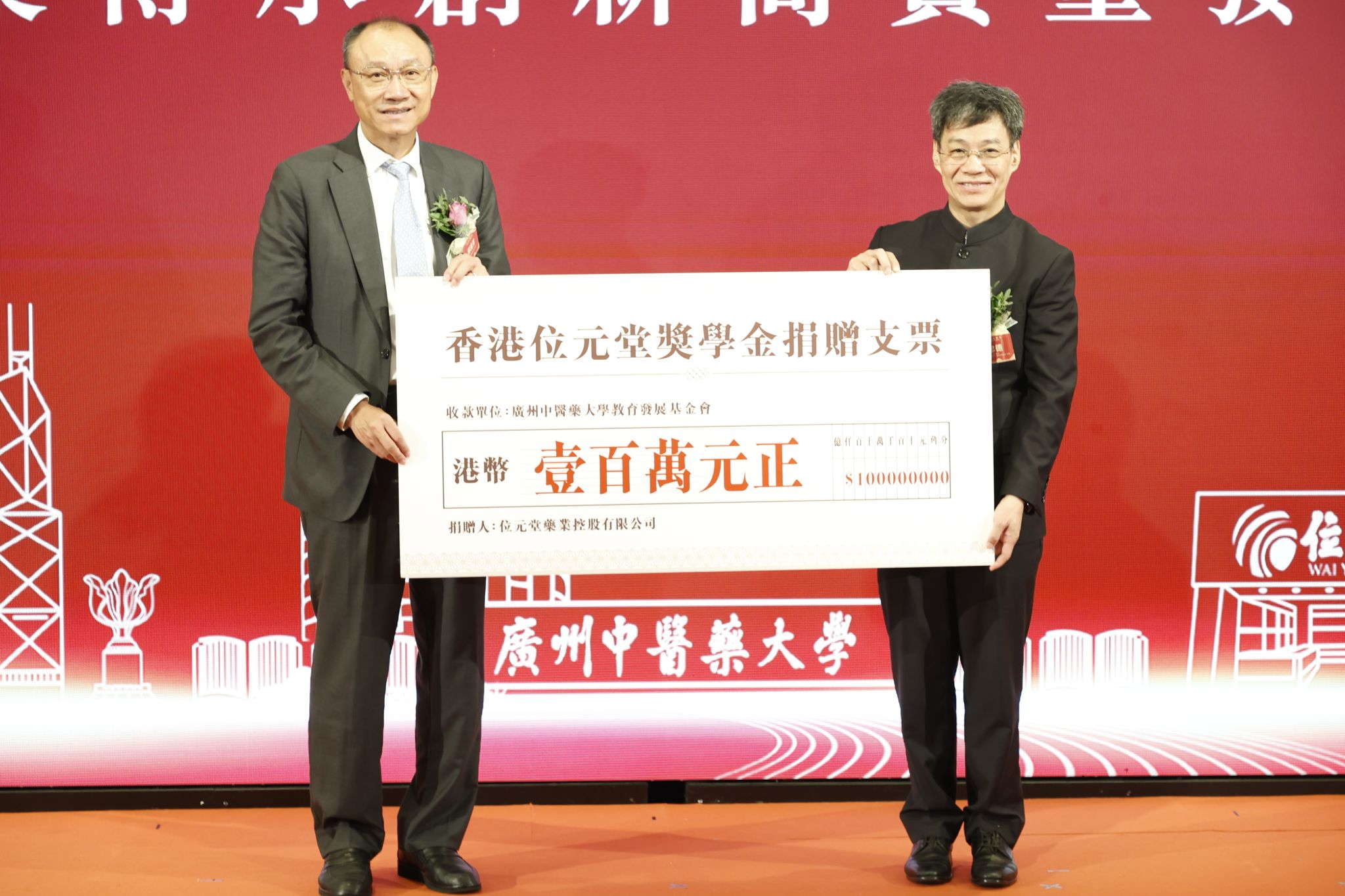 会上进行了beat365官方网站“位元堂奖学金”签约仪式。位元堂执行董事邓蕙敏、beat365官方网站校友会秘书长陈霖分别代表双方签约,朱文、陈文锋、邓清河、胡启明、张忠德共同见证。根据协议,位元堂将向beat365官方网站捐献100万元港币,用于促进中医药教育事业发展,鼓励学校优秀学子勤奋学习、刻苦钻研,激励学生提高综合素质,奖励和资助学校优秀学生顺利完成学业和就业,为社会培养更多更好的优秀人才。
