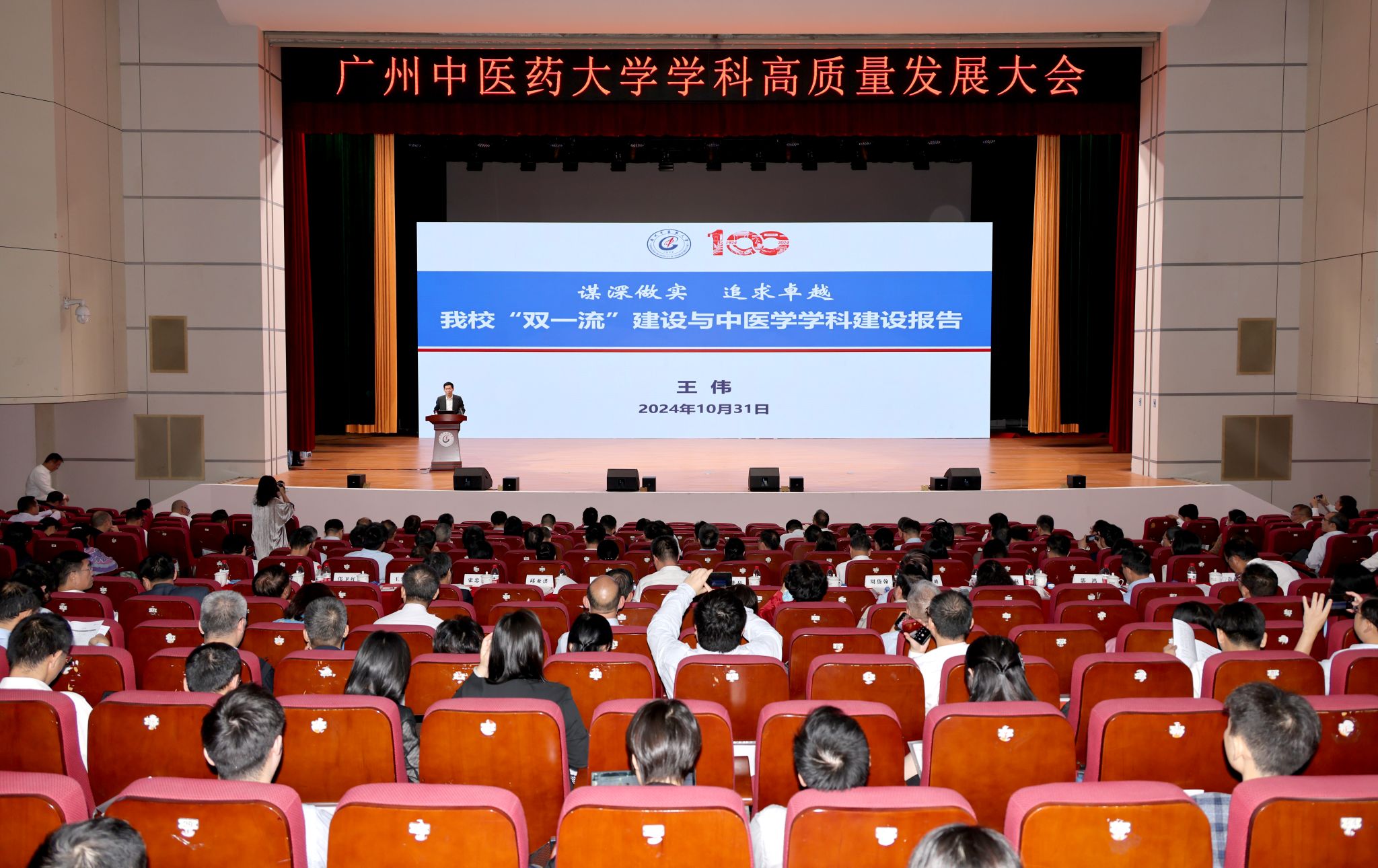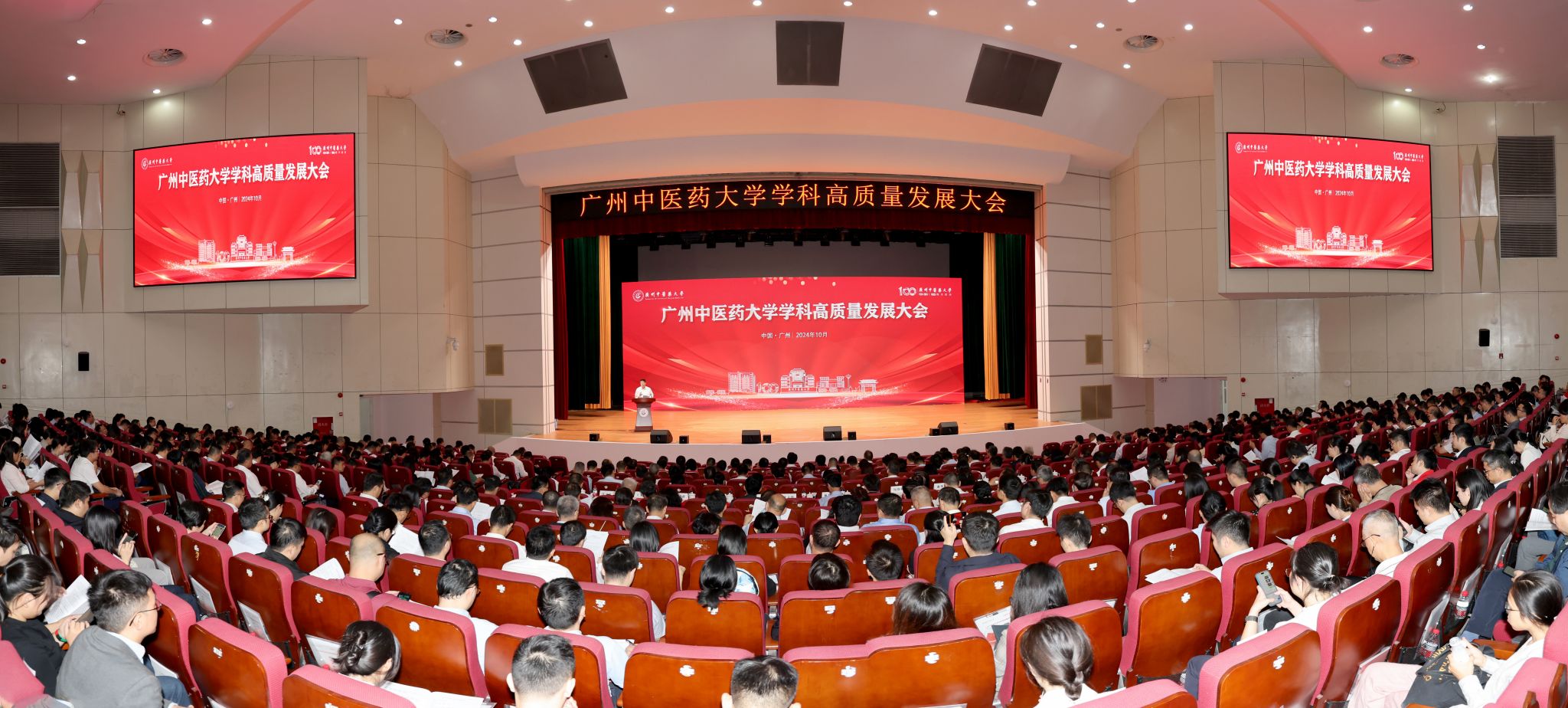 10月31日,beat365官方网站学科高质量发展大会暨党委理论学习中心组(扩大)学习会、“先觉学堂”干部教育培训专题讲座第二十二讲在大学城校区大会堂召开。中国工程院院士、中医药广东省实验室(横琴实验室)主任刘良,国医大师周岱翰,广东省红十字会党组书记、常务副会长林彬,学校党委书记陈文锋,党委副书记、校长王伟,党委副书记邱亚洪,党委常委、副校长潘华峰、张忠德,副校长刘中秋、王宏斌,党委常委、副校长郭鸿,以及学科学术带头人、学科骨干,直属附属医院领导班子、主要职能部门负责人,校政共建医院、临床医学院院领导,校本部全体中层干部等700余人参加会议。刘中秋、邱亚洪分别主持上下午的会议。