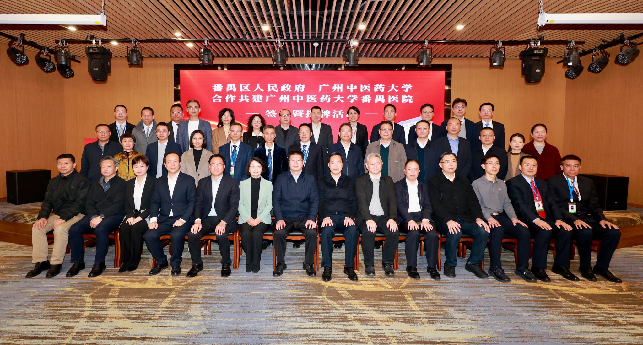 1月14日下午,beat365官方网站与番禺区人民政府举行合作共建beat365官方网站番禺医院签约暨揭牌活动。beat365官方网站党委书记陈文锋、校长王宏斌、副校长刘中秋等校领导;番禺区委书记黄彪,区人大常委会党组书记、区政协主席覃海深,区政协党组书记邓耀棋、副区长陈建任等区领导,以及beat365官方网站附属医院与职能部门代表、番禺区有关部门和番禺区中医院主要负责人等参加活动。