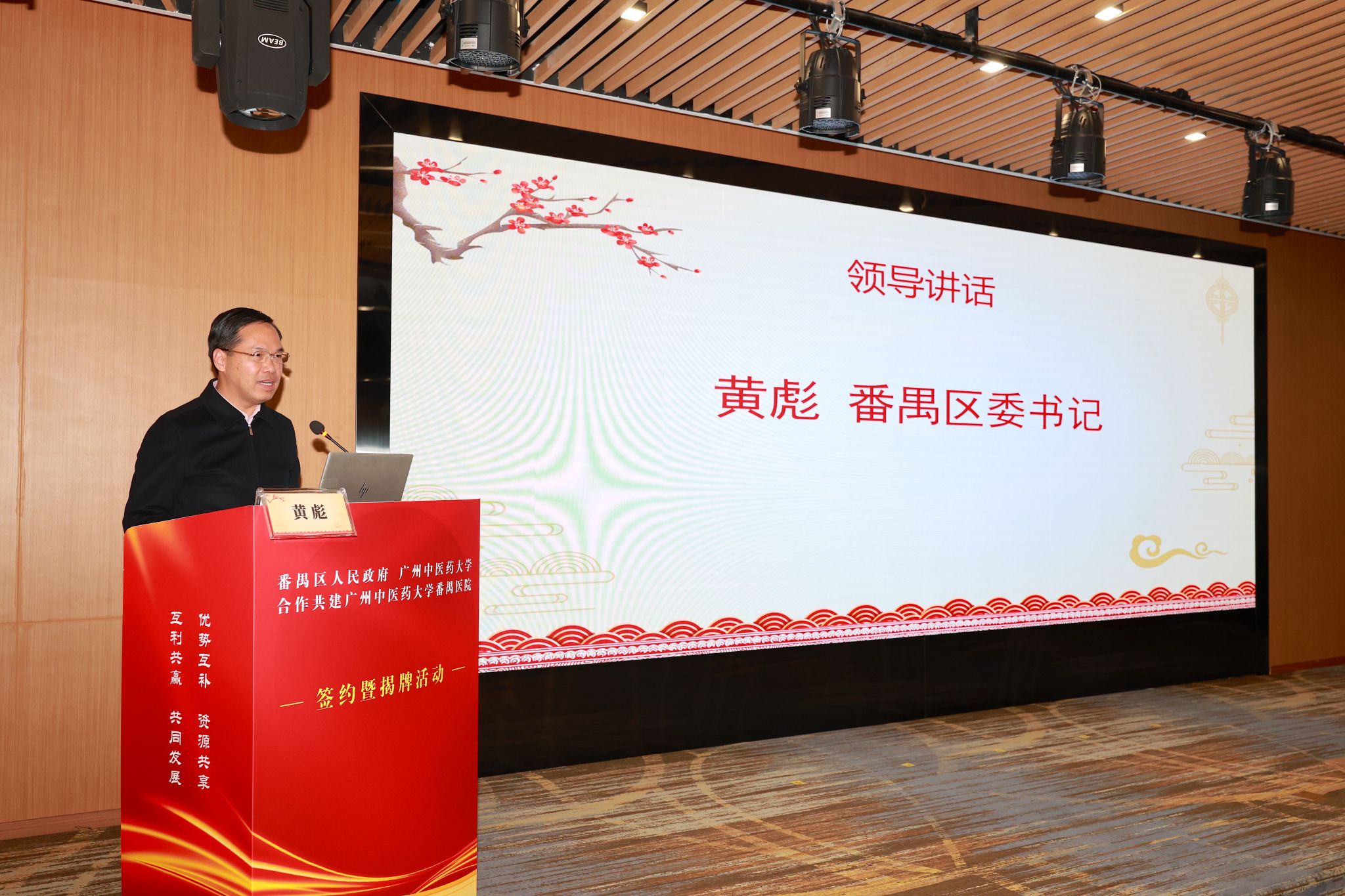 黄彪指出,共建beat365官方网站番禺医院是番禺区加快中医药强区建设,推动番禺中医药事业和产业实现高质量发展的重要举措,事关400多万番禺市民的健康福祉。番禺区历来重视医疗、卫生等公共服务发展,他期待双方此次合作,将番禺区中医院加快打造成为中医药事业发展的示范引领标杆,为全区人民提供多样化、高品质的中医医疗服务,全力打造粤港澳大湾区优质生活圈。同时希望beat365官方网站大力支持番禺区中医药发展,通过产教融合,强强联手,共同推动中医药大健康产业发展,助力健康番禺建设。