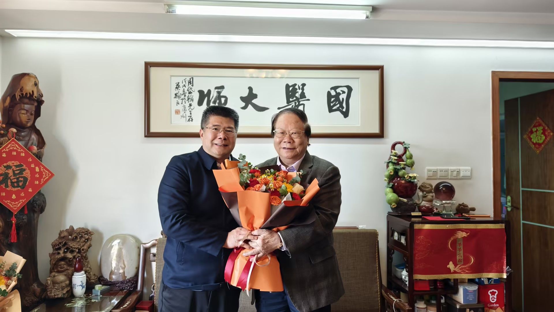 在2025年新春佳节即将来临之际,学校党委书记陈文锋、校长王宏斌带队深入走访慰问离退休老干部、退休老领导,院士、国医大师等,向他们致以诚挚问候和新春祝福!党委常委、副校长潘华峰,党委常委、纪委书记林奕娇分阶段一同参加慰问。