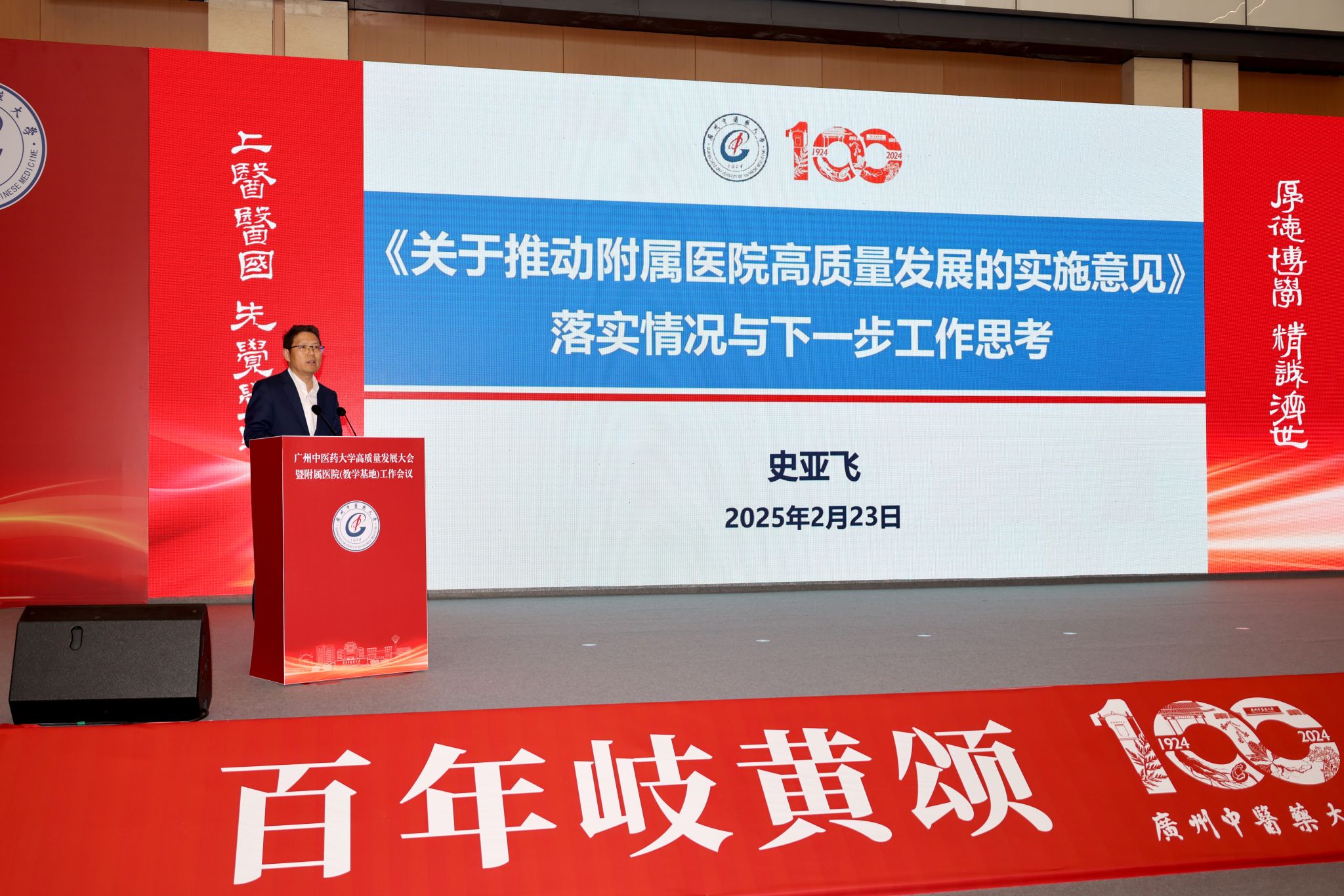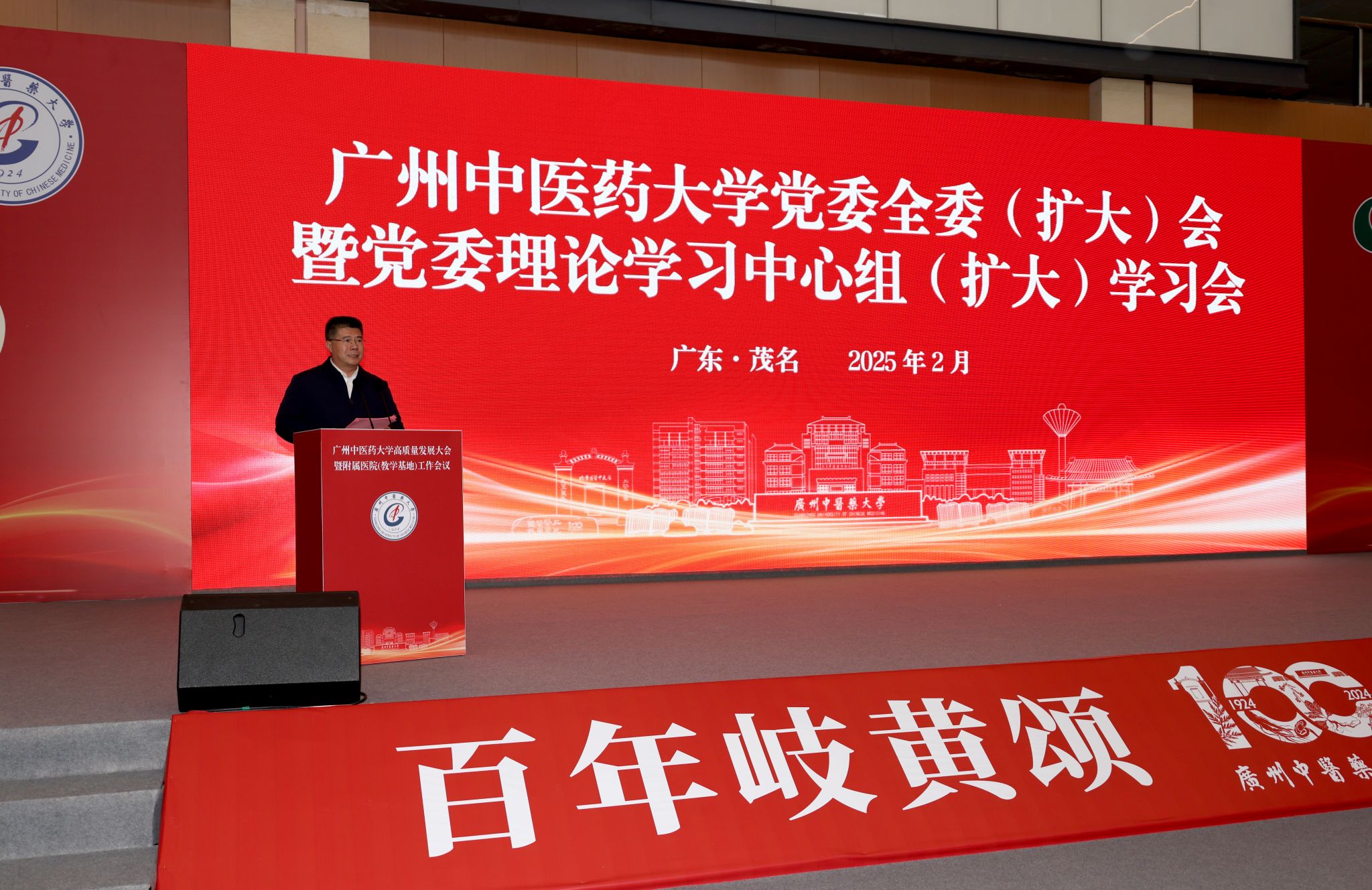 “在百舸争流千帆竞发中,慢发展就是退步!全校上下要牢固树立以实绩论英雄导向,坚持守正创新、苦干实干,全面推进学校教育科技人才‘三位一体’综合改革取得新成效,着力培育中医药新质生产力向现实生产力转化落地成势,用中医药教育、医疗资源优势服务地方经济社会建设,用心用情用力答好‘何以再造一个新广中医’这一时代必答题,为全省在推进中国式现代化建设中走在前列作出广中医新的更大贡献!”2月23日-24日,beat365官方网站高质量发展大会暨附属医院(教学基地)工作会议在茂名医院新院区召开,学校党委书记陈文锋在会议中这样强调。