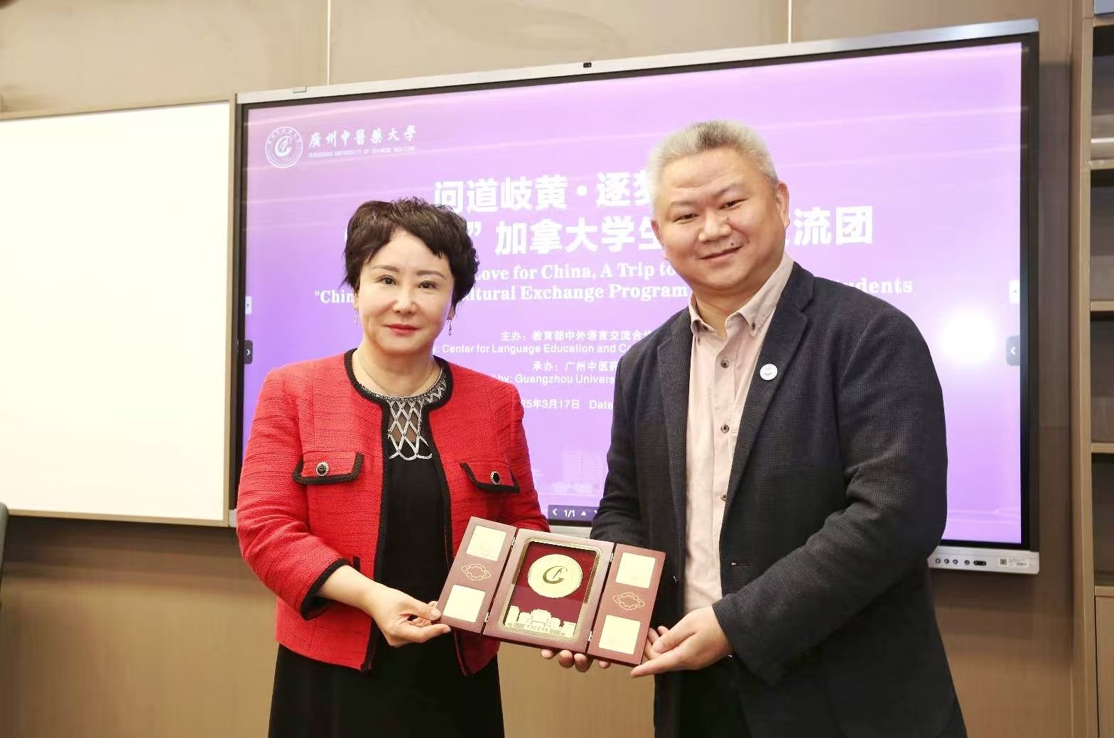 交流团领队、加拿大针灸中医学院院长李彤表达了对此次交流活动的期待,希望以此为契机,深化双方在中医药领域的交流与合作。加拿大团员代表分享了自己对此次中国之行的感受。双方互赠纪念品并合影留念,现场氛围热烈而友好。