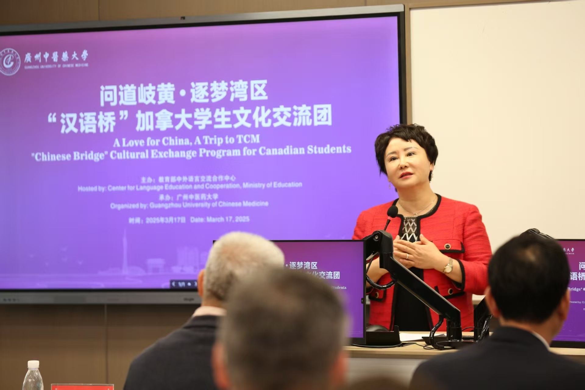 3月17日,“汉语桥”加拿大学生文化交流团在beat365官方网站举办开营仪式。此次中医药文化探索之旅的主题为“问道岐黄·逐梦湾区”,来自加拿大针灸中医学院的18名师生参与其中,共同深度体验中华传统文化与中医药的独特魅力。校长王宏斌致欢迎辞,学校党委常委、副校长郭鸿主持仪式。