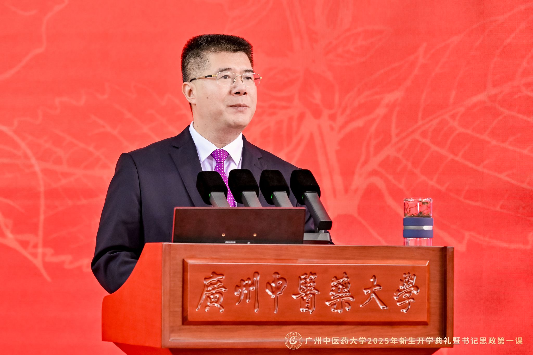 围绕“如何书写广中医人的青春华章”“怎样当好新百年的新广中医人”,陈文锋对2025级新同学提出三点殷切希望。一是坚定理想信念,做心怀家国的新时代广中医人。以国医大师邓铁涛教授等先贤前辈为榜样,涵养“上医医国,先觉觉民”家国情怀,弘扬“厚德博学、精诚济世”校训精神,用大医精诚铸魂、救死扶伤立心,立志做有理想、敢担当、能吃苦、肯奋斗的新时代好青年。二是练就过硬本领,做敢于担当的新时代广中医人。把立足现在专业所学,练就过硬本领作为首要任务,在新技术变革、学科交叉融合的今天,掌握古老智慧与前沿技术,多学科融合推动中医药走向世界。三是做永葆初心、矢志奋斗的新时代广中医人。既要读万卷书,更要行万里。要勇于披荆斩棘,遇到困难不低头,遇到挫折不气馁,敢于挑战未知,敢于尝试新事物,敢于创新创造,不断突破自我,实现自我超越。