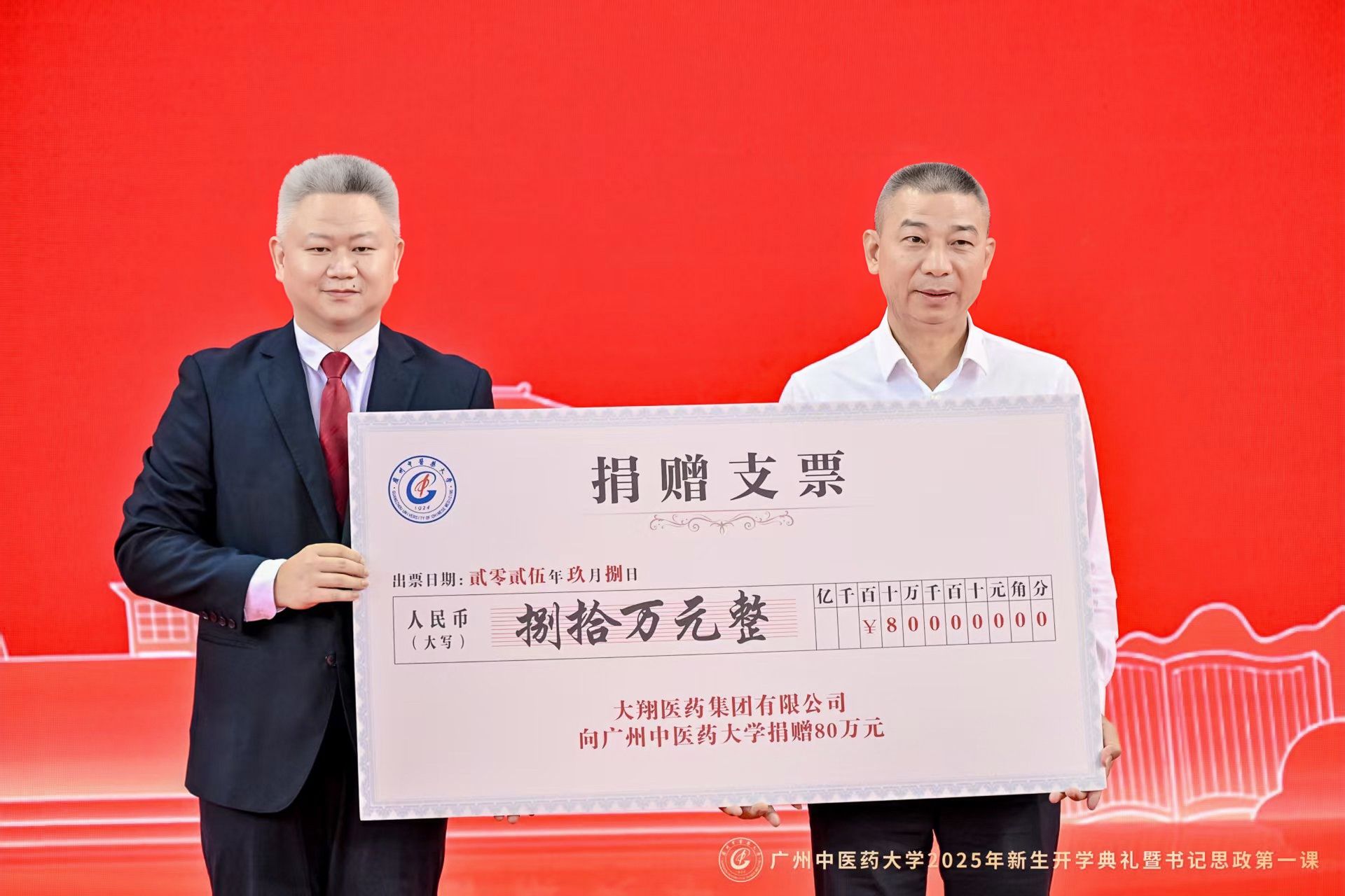 开学典礼上,还举行了“梁宛婷中医药学生奖助学金”“大翔奖助学金”“健翔奖助学金”捐赠仪式。广州耀中房地产发展有限公司副董事长、广州市天河区政协常委梁宛婷女士,大翔医药集团有限公司董事长陈东平先生,广东健翔医院管理集团董事、学校2024届校友龙遨洋先生,分别作为代表向学校捐赠。