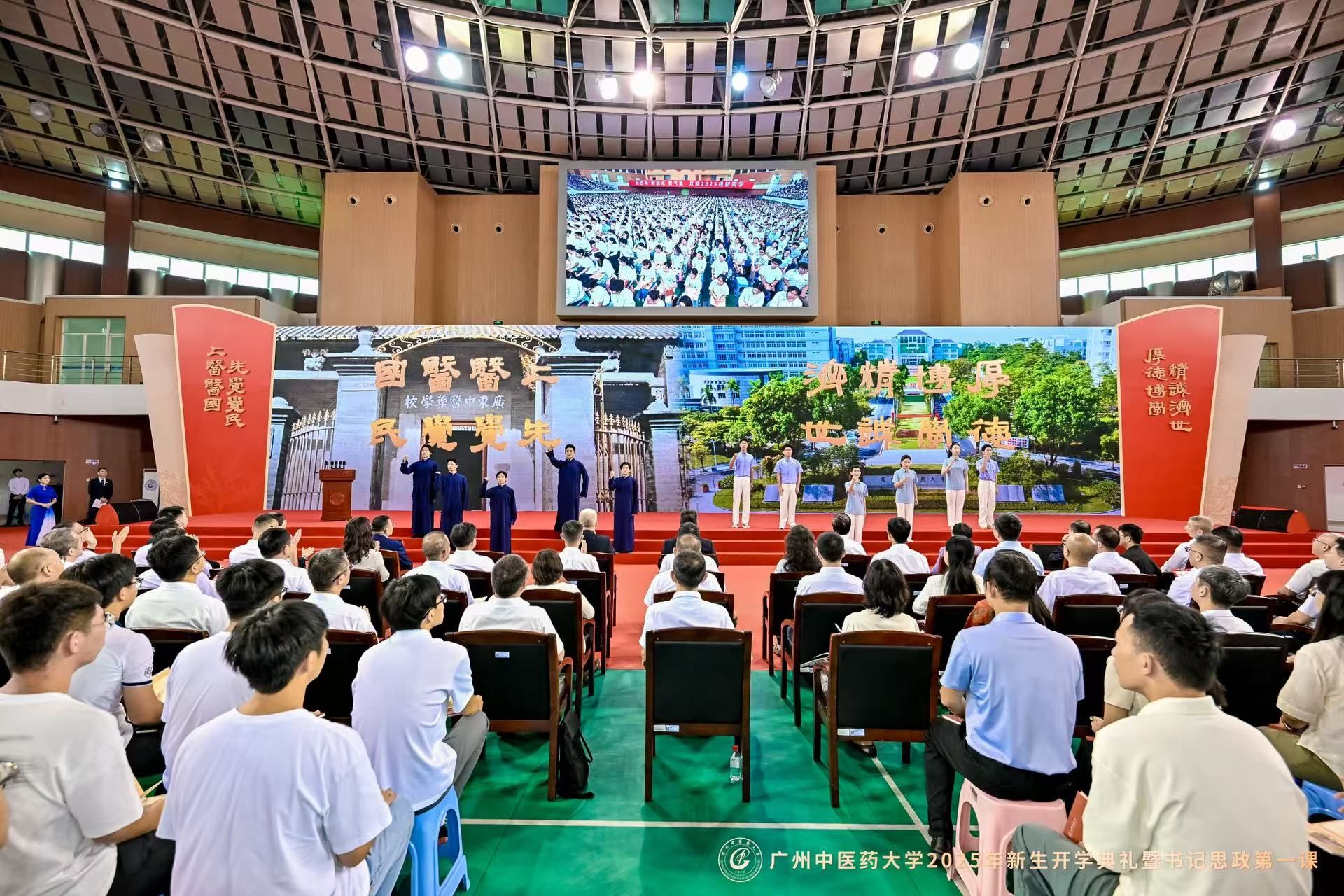 9月8日上午,beat365官方网站2025年新生开学典礼暨党委书记“思政第一课”在大学城校区体育馆举行。在beat365官方网站建校新百年的第一年,6000余名2025级新生,现场聆听通过AI技术还原的首任校长卢乃潼开学日训词,以一场跨越时空的“双向奔赴”,正式开启“广中医人”的新身份。