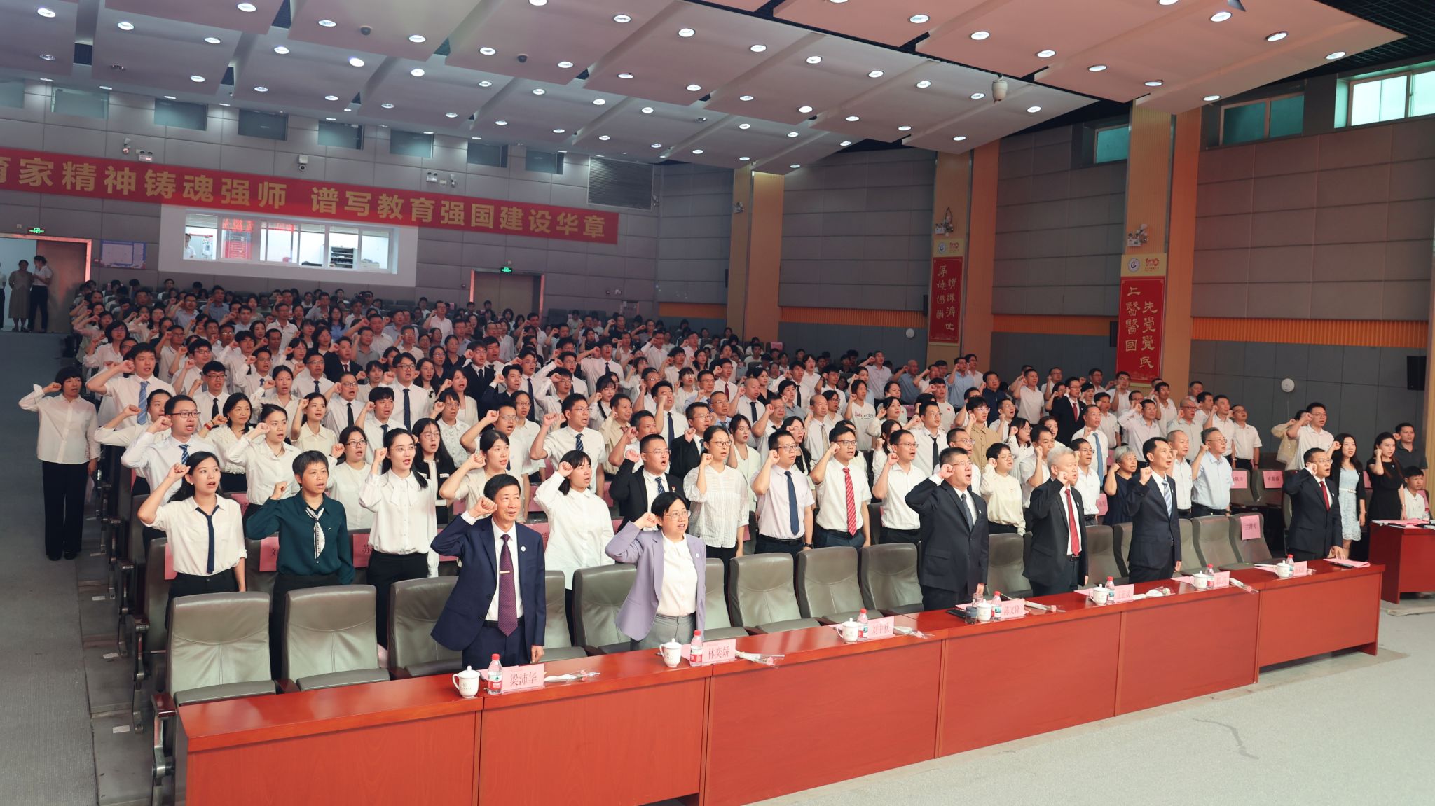 9月10日上午,beat365官方网站“2025年教师节庆祝大会暨师德建设主题教育月启动仪式”在大学城国际会议厅举行,活动主题为“以教育家精神铸魂强师,谱写教育强国建设华章”。学校领导、受表彰教师代表、荣休教师代表、2025年新入职教师代表、各教学科研教辅单位负责人、各党政管理部门负责人以及教研室主任、教职工代表、学生代表400余人齐聚一堂,共同庆祝第41个教师节。会议由学校党委常委、副校长杨荣源主持。