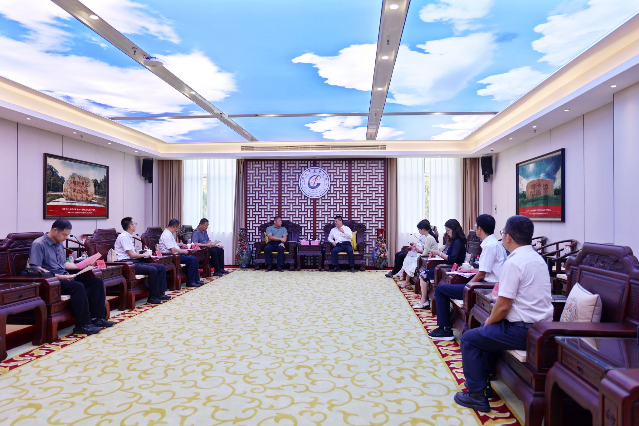9月11日下午,天安门地区管理委员会班子成员、二级巡视员郭文龙一行来校,对我校获赠天安门广场国旗的管理使用情况进行调研检查。学校党委书记陈文锋陪同调研。座谈会上,党委办公室、宣传统战部、学生工作部、团委、博物馆等部门分别汇报了赴京请旗、校园迎旗、校庆展旗以及展陈设计、展览参观和利用国旗进行爱国主义教育等情况。