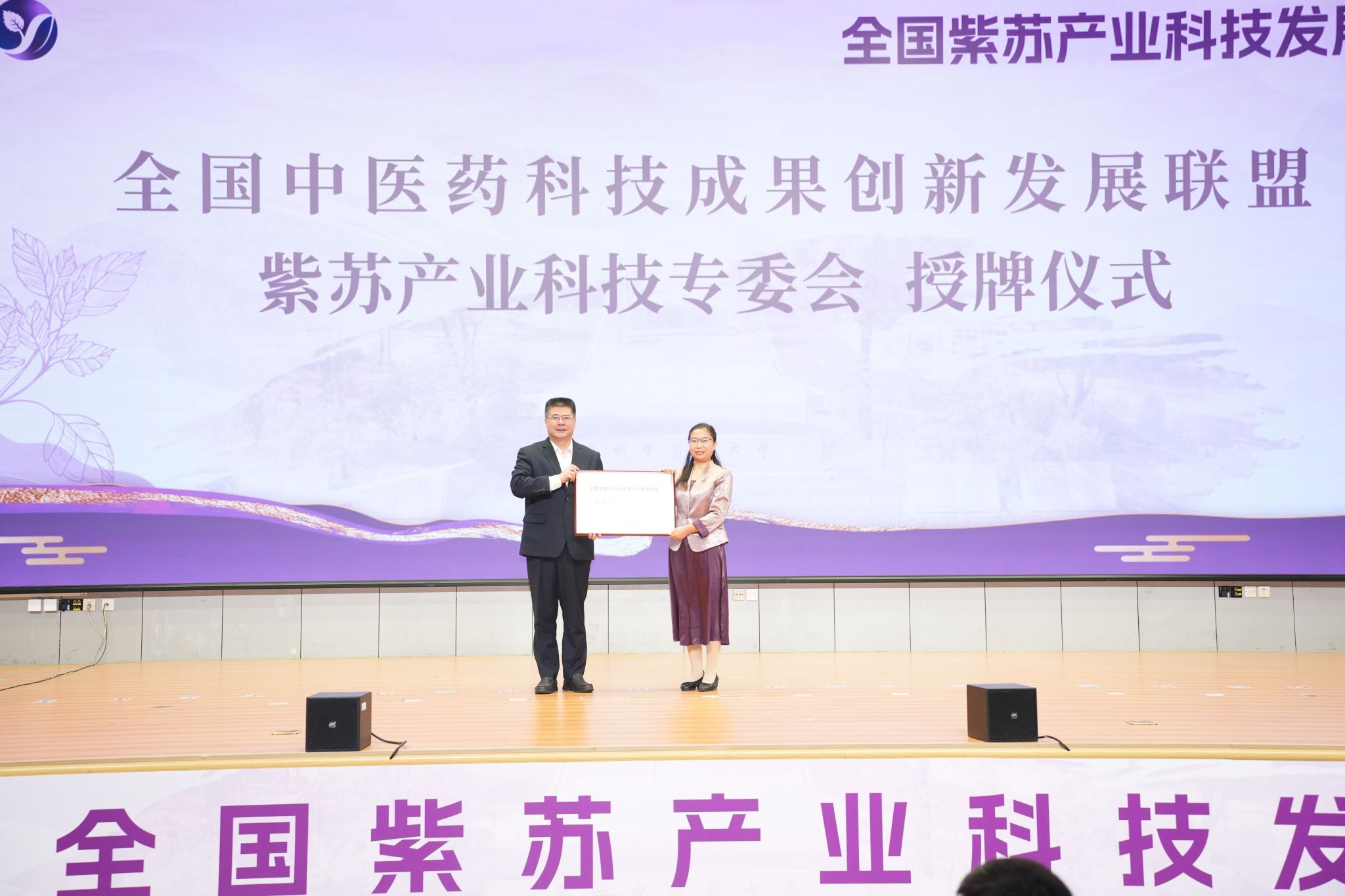 beat365官方网站党委书记陈文锋为全国中医药科技成果创新发展联盟紫苏产业科技专委会授牌,与广东省中医药局副局长柯忠共同为理事单位授牌,标志着我国紫苏产业跨区域、跨领域协同创新的全国性平台正式成立。该专委会将整合华中、东北、西南三大主产区资源优势,打通“种植-研发-加工-应用”全产业链协作壁垒,聚焦技术攻关、成果转化、标准制定等七大核心任务,推动紫苏产业从分散发展向集约化、规模化、标准化高质量发展转型,为行业发展树立新标杆。