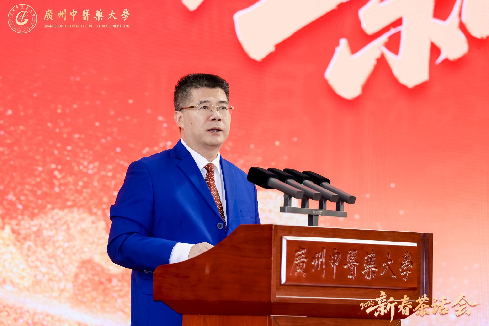 王宏斌发表讲话并揭晓学校2025年度十件大事。他表示,2025年在全体广中医人的齐心拼搏下,学校各项工作成效显著。2026年,学校将紧紧围绕人才培养、科学研究、社会服务、文化传承创新、国际交流合作等核心领域,聚焦“双一流”和高水平大学建设目标,深度融合“铁涛精神”,为广东增创新优势、实现新突破,为广东一直“走在前、作示范、挑大梁”贡献广中医力量。
