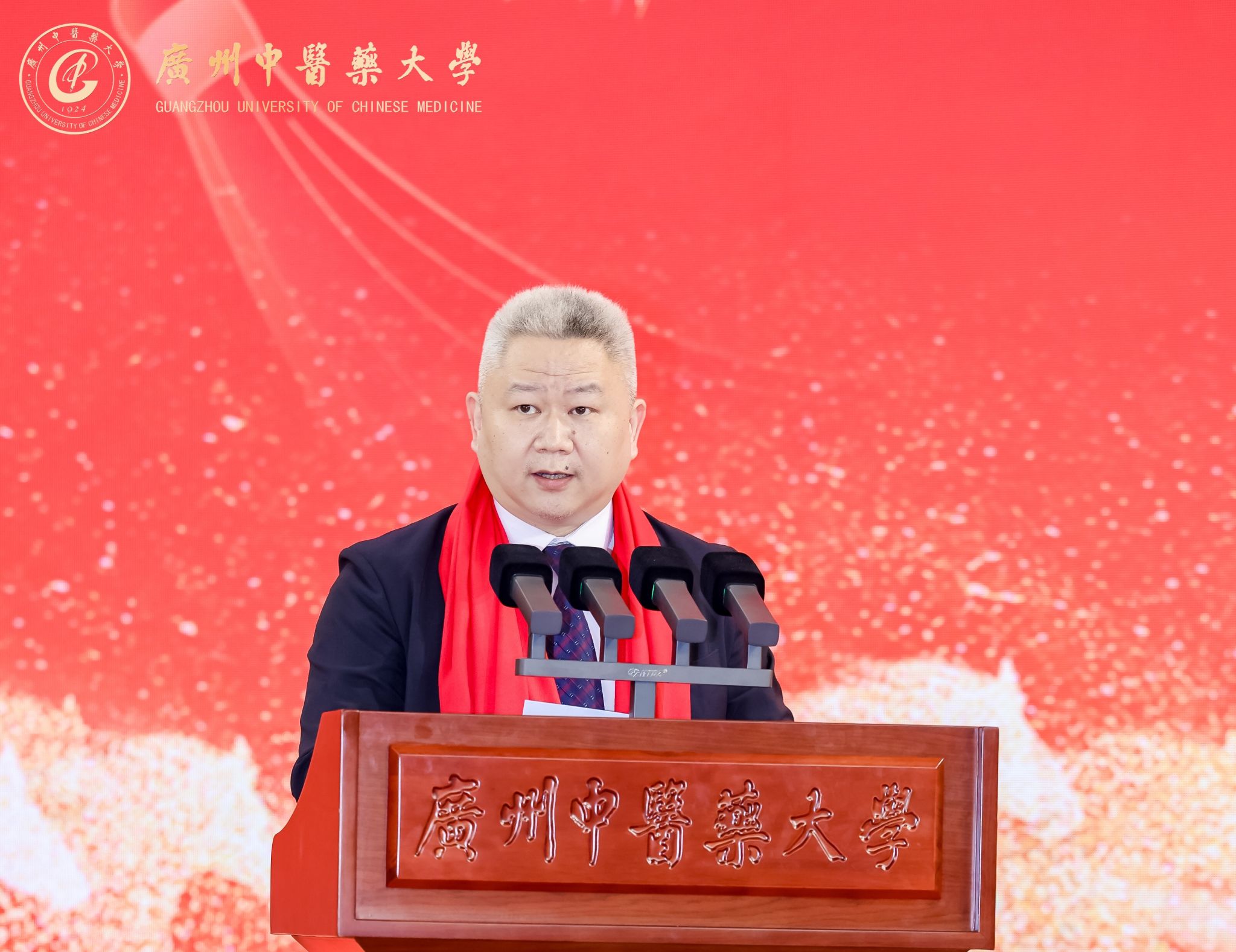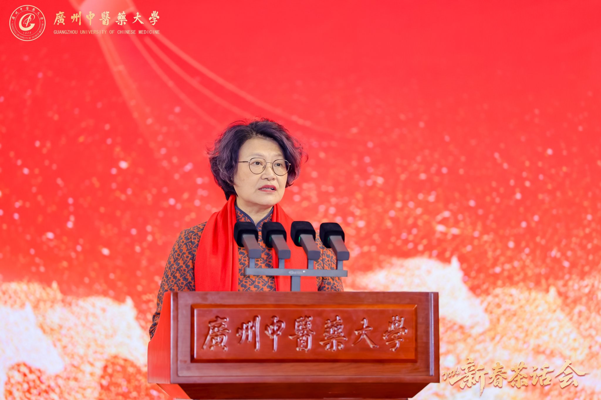 广东省名中医杨志敏教授作为教师代表发言,深耕岐黄三十余载,她坚守“读经典、跟名师、做临床”的治学准则,新的一年将秉持“融百家、守中正”的理念,深耕人才培养与学科建设,让“铁涛精神”薪火相传。
