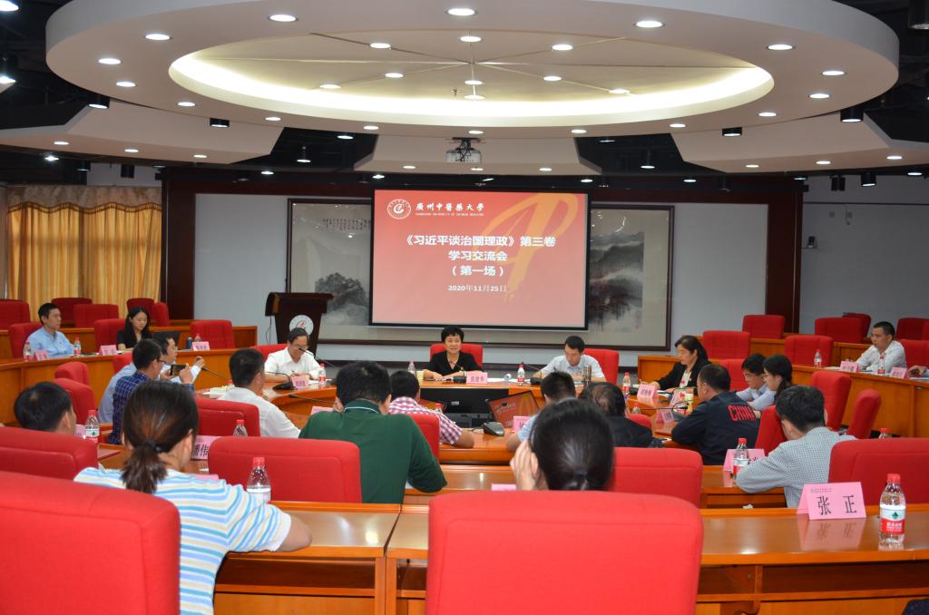 11月25日,beat365官方网站《习近平谈治国理政》第三卷学习交流会(第一场)在大学城校区办公楼101会议室举行,学校党委书记张建华出席会议并讲话。