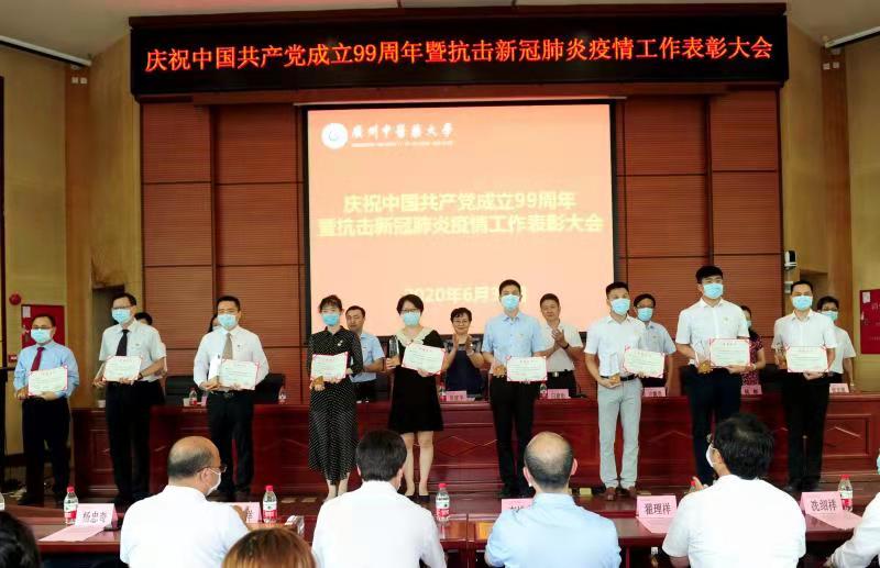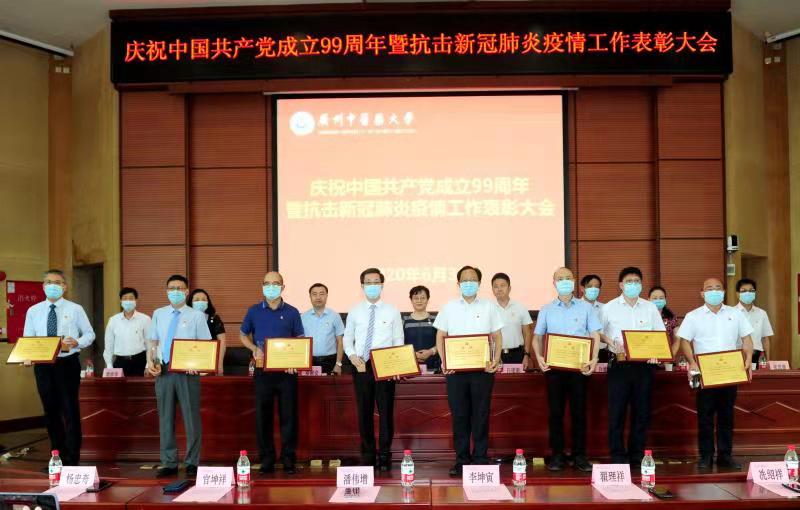 庆祝大会举行了新党员入党宣誓、老党员重温入党誓词仪式;对在抗击新冠肺炎疫情中表现突出的8个先进基层党组织和113名先进个人进行了表彰、颁奖;后勤管理处党总支龚建文、第一附属医院援助湖北医疗队临时党支部詹少锋、第二附属医院芳村医院呼吸胸外科护士、国家援助湖北第二支中医医疗队队员窦明鑫等三位同志作为先进基层党组织、先进个人代表发言。