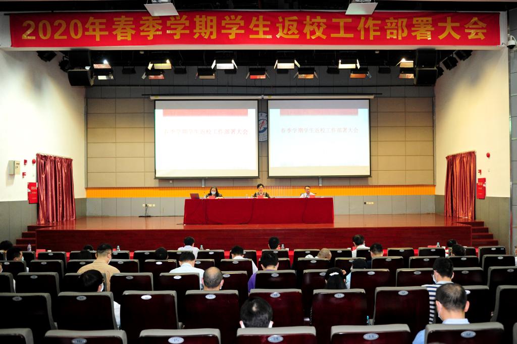 4月28日,我校2020年春季学期学生返校工作部署大会在大学城校区国际会议厅召开。学校党委书记张建华部署工作,就学生返校工作要求提高政治站位、落实防控责任,确保组织工作有序进行。副校长潘华峰解读学生返校工作方案。校长王省良主持大会。