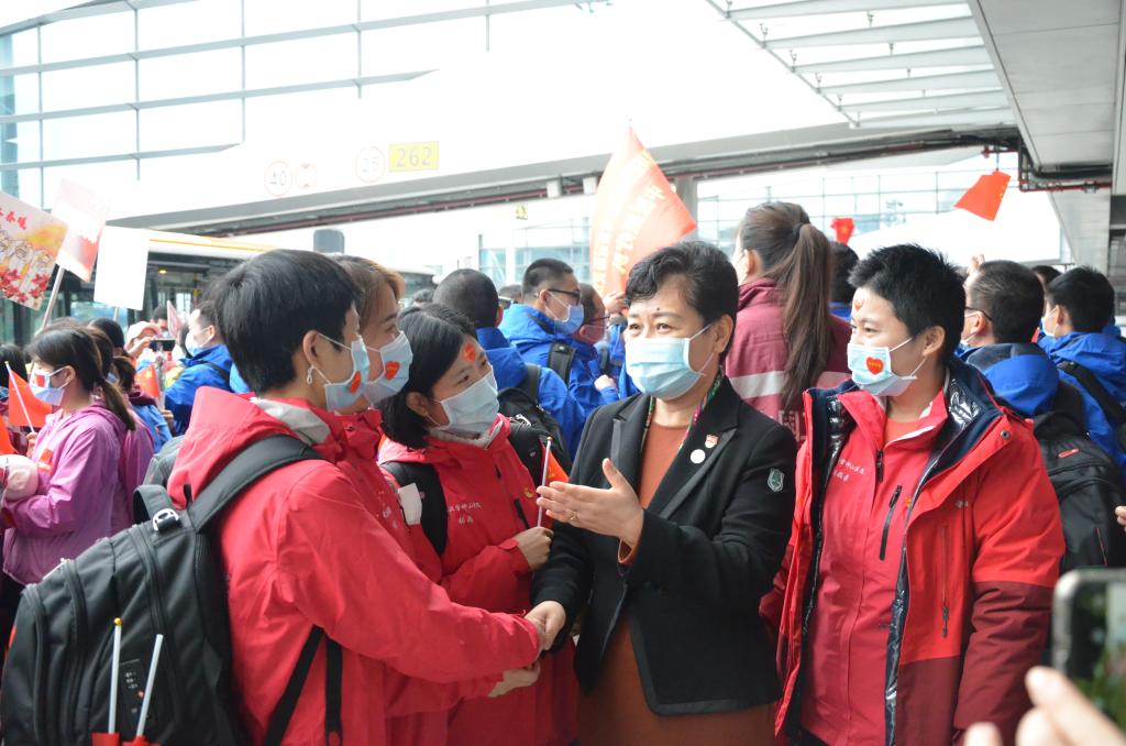 “通过这场血与火的战斗洗礼,你们变得更加坚强更加自信,真为你们感到骄傲和自豪。沧海横流,方显英雄本色。你们在湖北抗疫的每一份努力、每一份成绩都牵动着学校和医院、牵动着广大师生和医护人员的心!”张建华欢迎学校附属医院驰援湖北医疗队的队员们平安回家,向他们致以崇高的敬意。“她表示,最近一段时间,学校的官微公众号、线上教学的课堂上,都在传颂着医疗队员们主动请缨、英勇奋战、不畏艰险、抗击疫情的战斗故事。队员们乐于奉献、不怕牺牲的这种大无畏的精神,为大学精神增加了更加生动、更加鲜活的内容,使得“厚德博学、精诚济世”的大学精神更加深入人心。她说,“希望大家有机会给广大师生、医护人员讲一讲在湖北一线抗疫斗争的可歌可泣的故事,让我们的大学精神、医院的精神薪火相传。讲一讲中医药在抗击新冠肺炎过程当中所发挥的巨大的不可替代的作用,让中医药守正创新的文化自信薪火相传。”