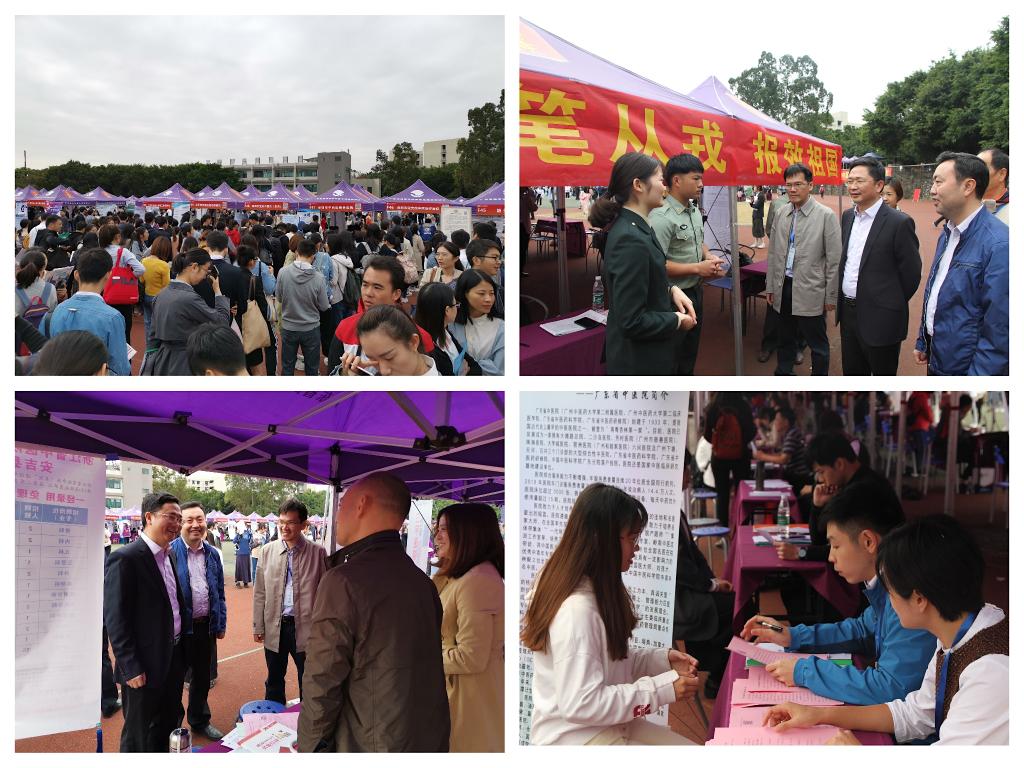 由广东省教育厅主办、beat365官方网站承办的广东省2020届普通高校毕业生中医药学类(含食品、化工)专场供需见面会,于11月28日在我校大学城校区举行。本场供需见面活动共有省内外近350家医药类及食品化工类企事业单位、卫生行政部门参加,提供近1.4万个就业岗位,吸引了近万名毕业生前来求职应聘。学校党委邓国安副书记陪同广东省高等学校毕业生就业指导中心陈东海主任一行到活动现场指导工作,并与用人单位和毕业生亲切交谈。