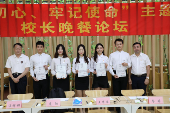 论坛开始前,王省良和邓国安为新聘任的第七届学生校长助理颁发聘书并合影留念。