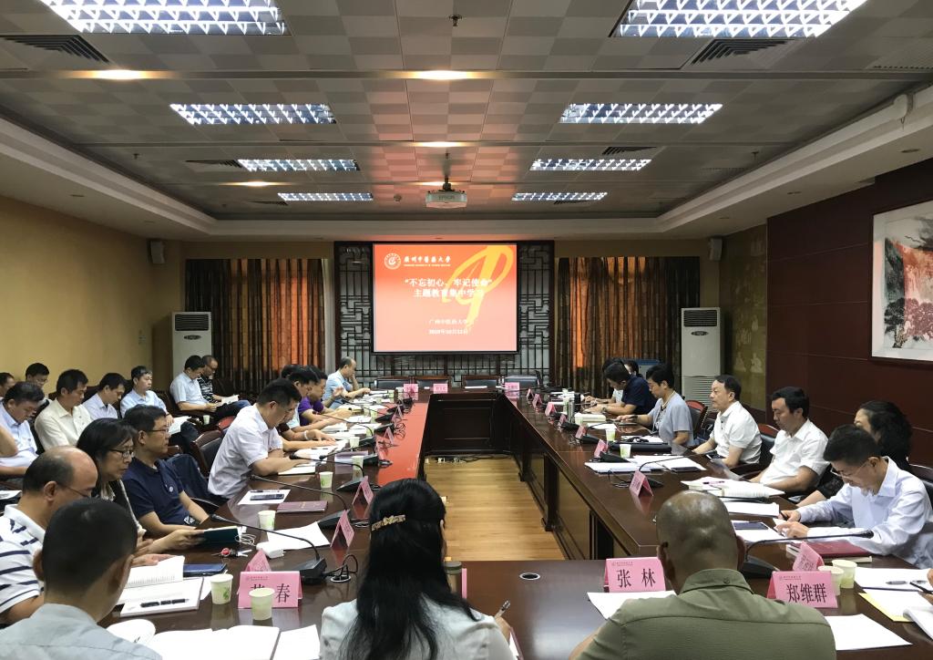 10月12日上午,学校党委在大学城校区办公楼召开“不忘初心、牢记使命”主题教育第五次集中学习研讨会暨党委理论学习中心组扩大会,强调要始终把政治建设摆在首位,将主题教育从严从实全面推向深入。学校全体中心组成员和直属党支部书记参加会议。