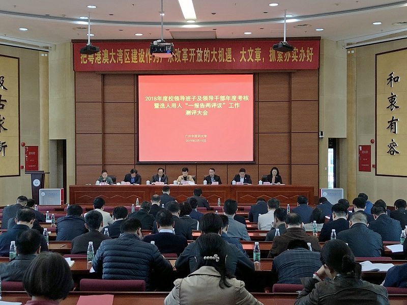 3月15日上午, 2018年度学校领导班子及领导干部年度考核暨选人用人“一报告两评议”工作测评大会在大学城校区学术报告厅举行。学校党委副书记、校长王省良同志主持会议,省委教育工委年度考核指导组苏文记处长、纪荣信科长出席会议。