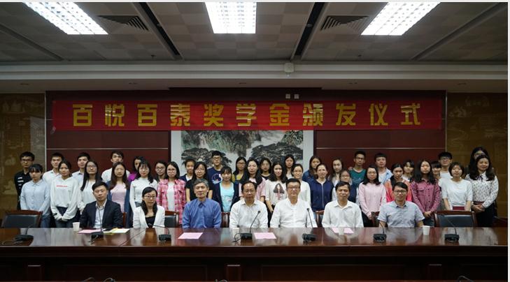 4月19日下午,由祥利集团设立的百悦百泰奖学金首次颁发仪式在我校大学城校区举行,祥利集团总裁徐学文、副总裁郑培伟、熊志军、学校党委副书记翟理祥、部分党政管理部门负责人和二级学院领导以及35名获奖学生代表参加了本次颁奖仪式。