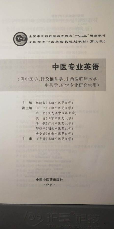3、中医专业英语,中国中医药出版社,2016 副主编