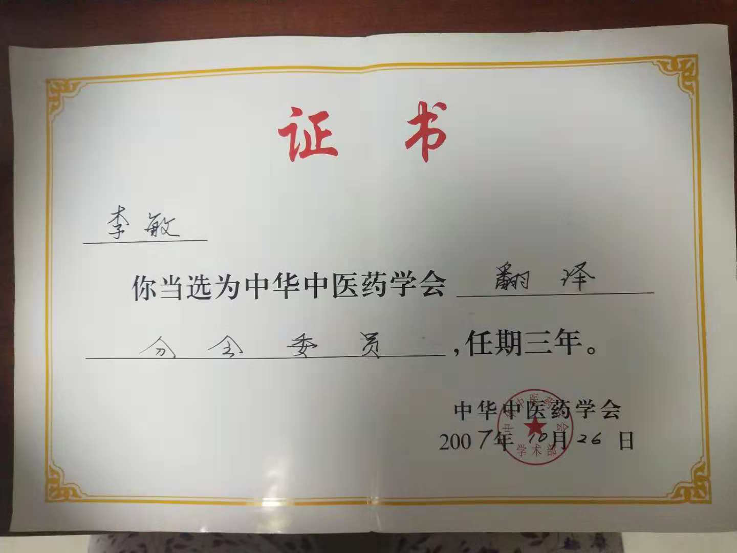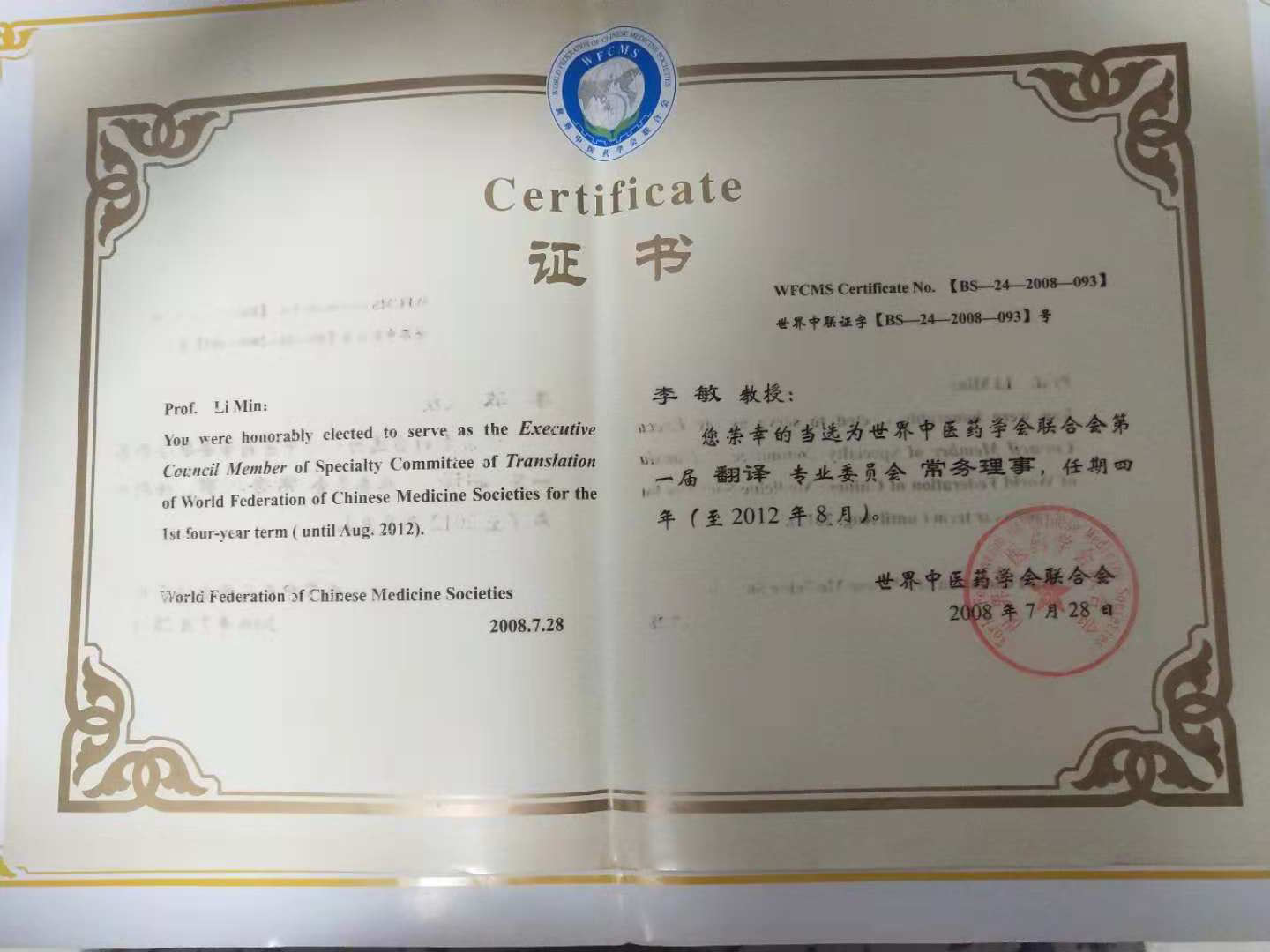 世界中医药学会联合会翻译专业委员会常务理事