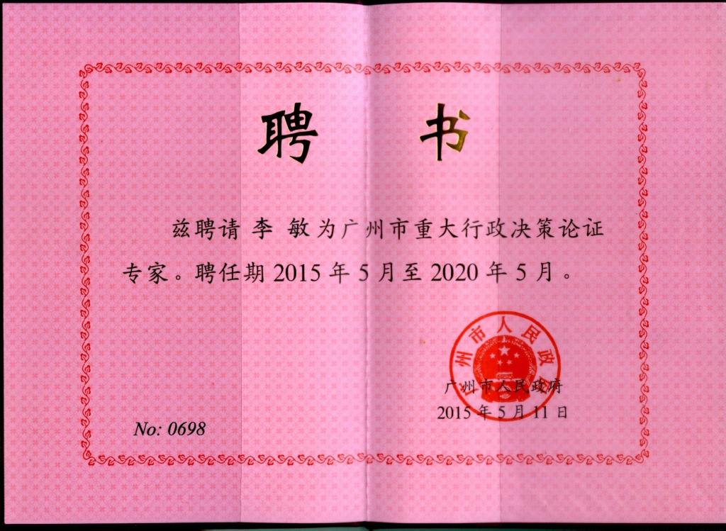广州市重大决策论证专家