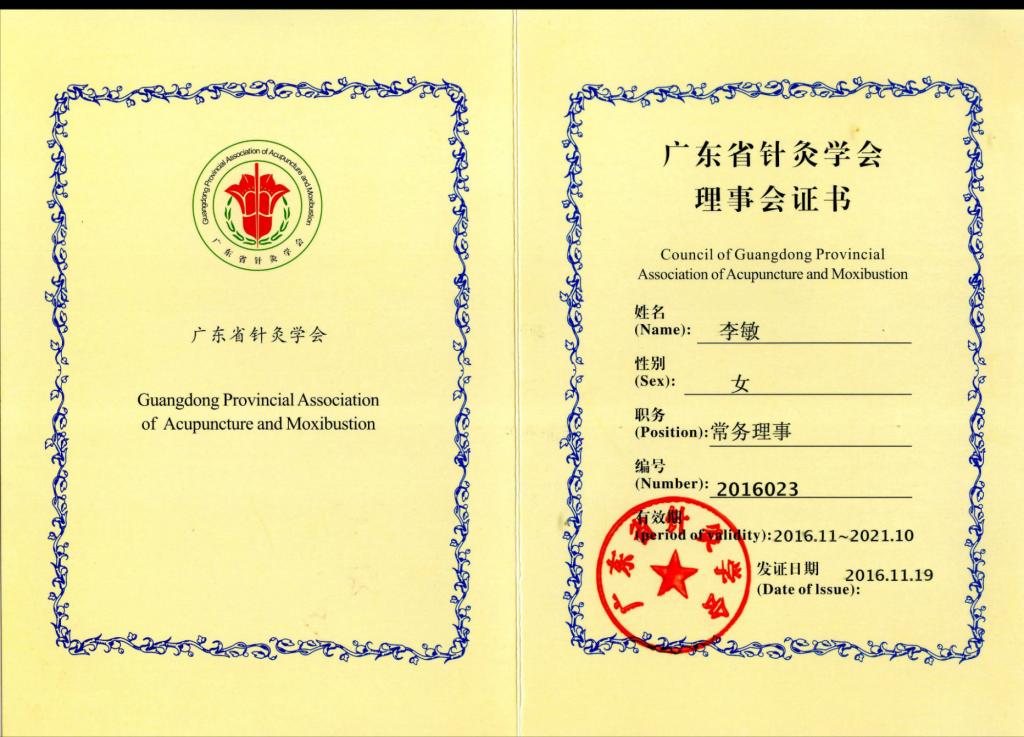 广东省针灸理事会常务理事