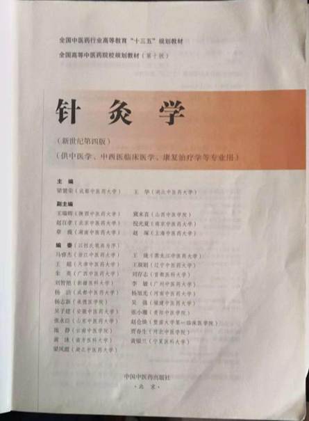 1、针灸学,全国中医药行业高等教育“十三五”规划教材,中国中医药出版社,2016 编委