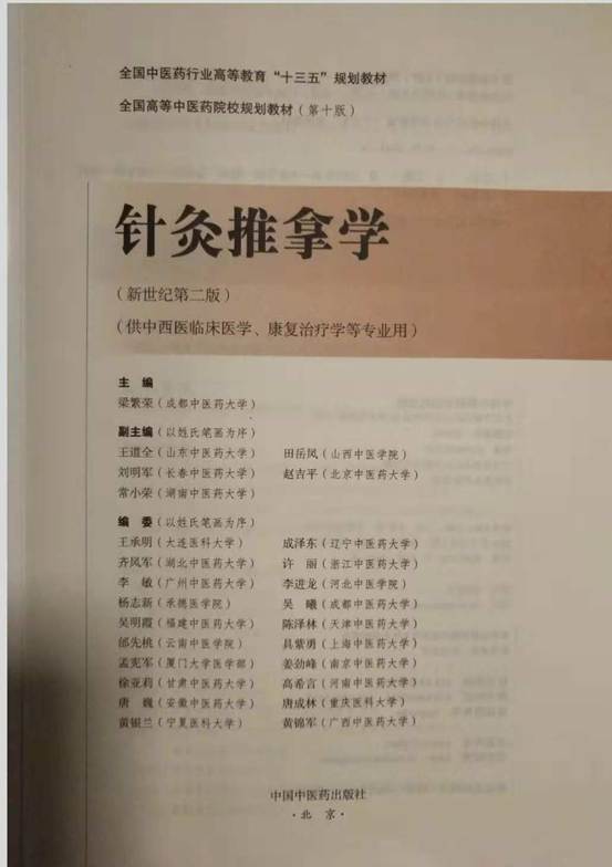 2、针灸推拿学,全国中医药行业高等教育“十三五”规划教材,中国中医药出版社,2016 编委
