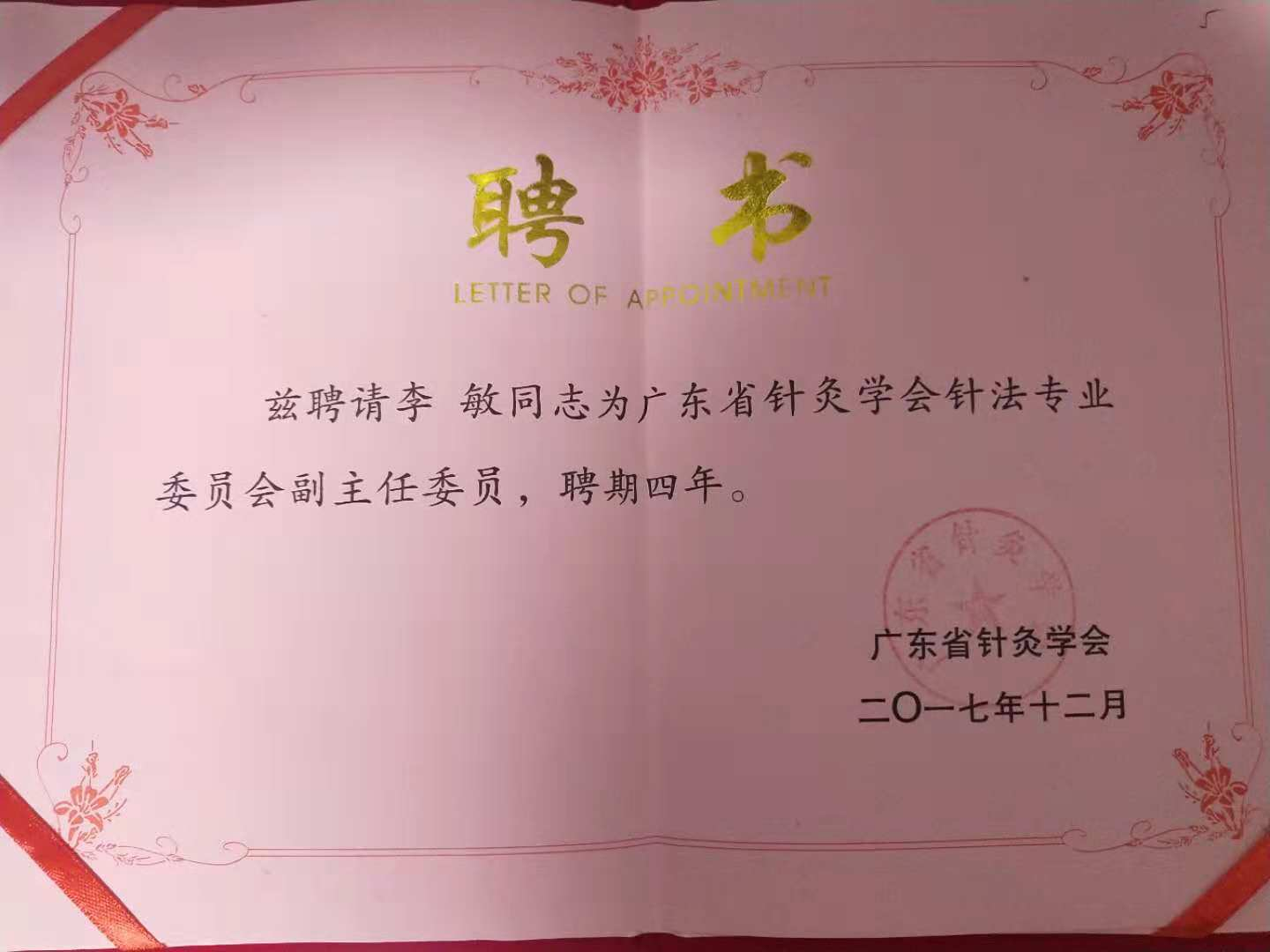 广东省针灸学会针法专业委员会副主任委员