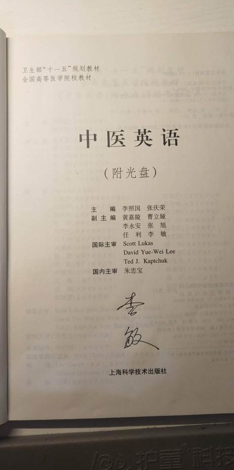 4、中医英语,上海科学技术出版社,2009 副主编
