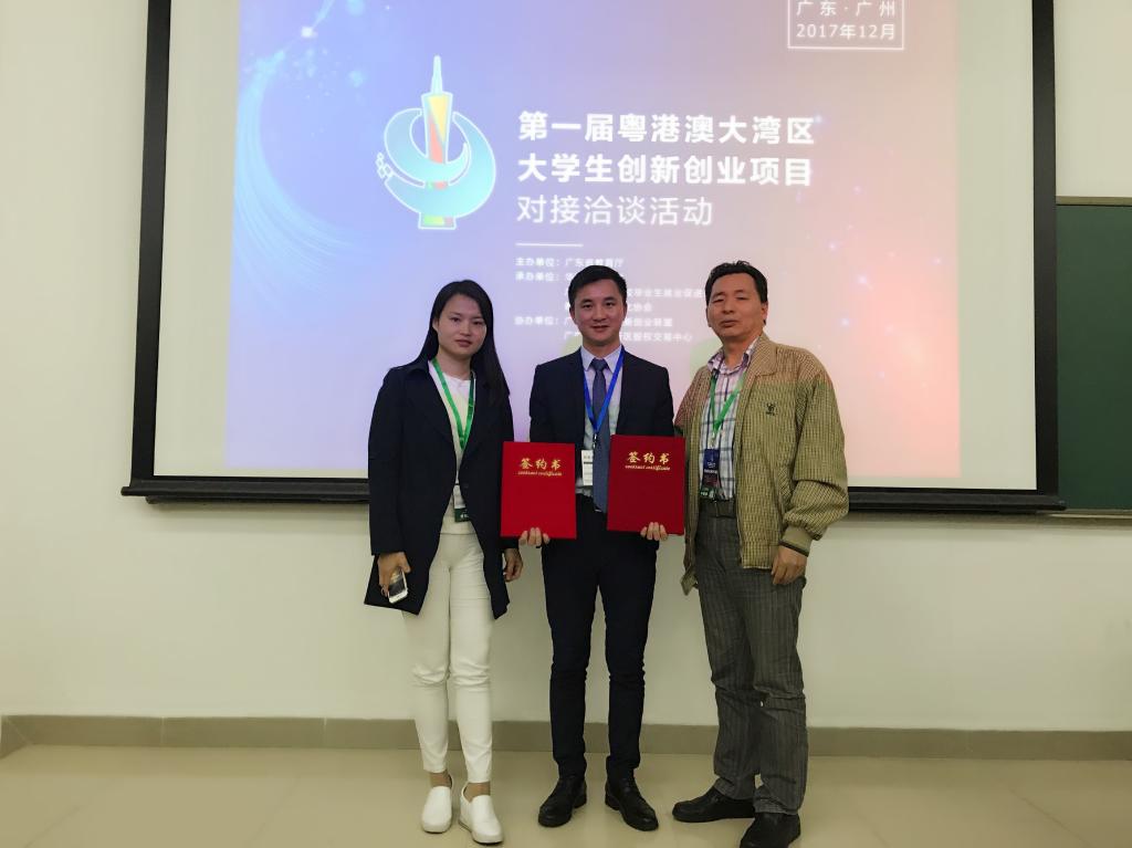 12月24日,由广东省教育厅主办的第一届粤港澳大湾区大学生创新创业项目对接洽谈活动在华南农业大学举行,我校学生10个创业团队参与展示,其中《移动穿戴经络仪的市场推广》、《广州谋士科技有限公司》、《杏林萌主——传承中医药文化的动漫品牌》参加了项目路演。《广州谋士科技有限公司》在活动中与深圳前海红森投资有限公司、广东达晨传媒有限公司达成投资意向。