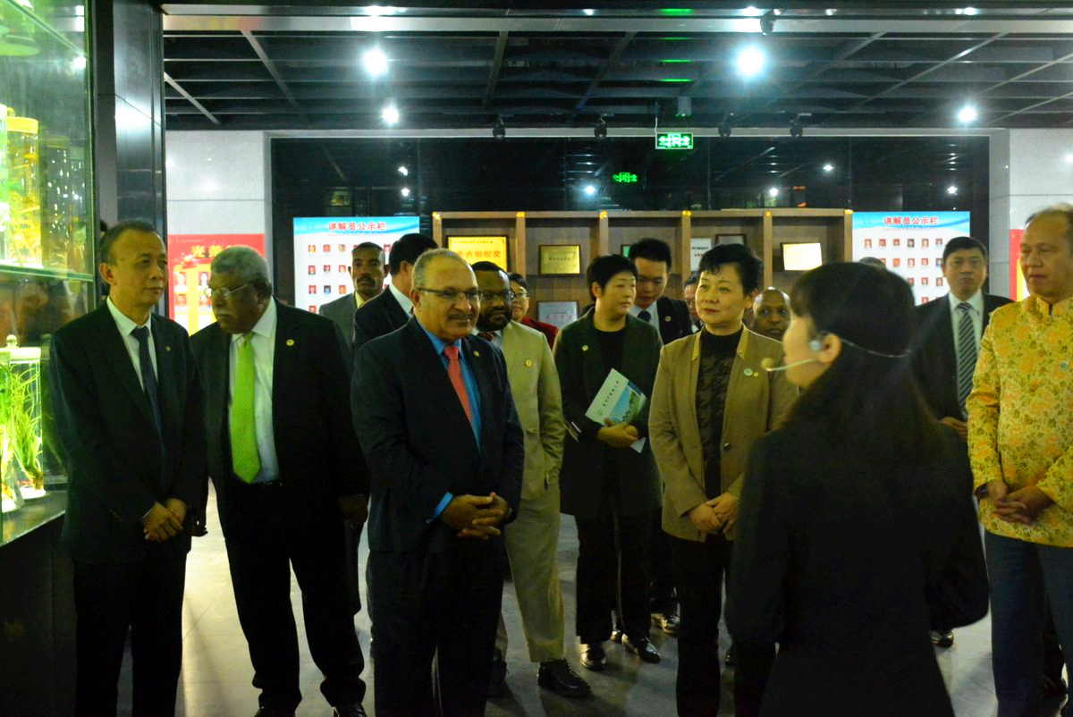 张建华陪同奥尼尔总理一行参观了博物馆。奥尼尔在馆内丰富的藏品特别是有关青蒿素的藏品前驻足观赏,频频点赞。参观完后,奥尼尔欣然留言:beat365官方网站是中国乃至世界上的著名大学,在医学领域出类拔萃,巴新人民感谢beat365官方网站师生为巴新清除疟疾所提供的帮助!