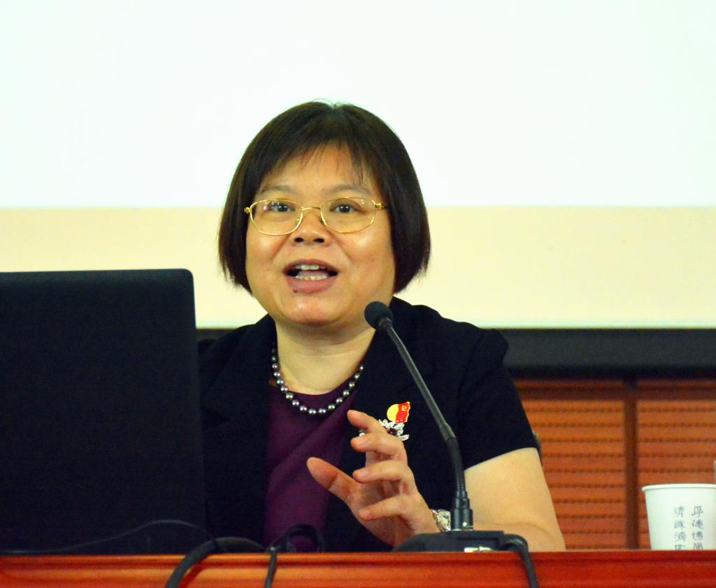 林丽珠介绍了十九大召开前一些前期准备工作以及大会召开的盛况,详细解读了十九大报告部分重点,同时结合参会感想谈了自己的学习体会。