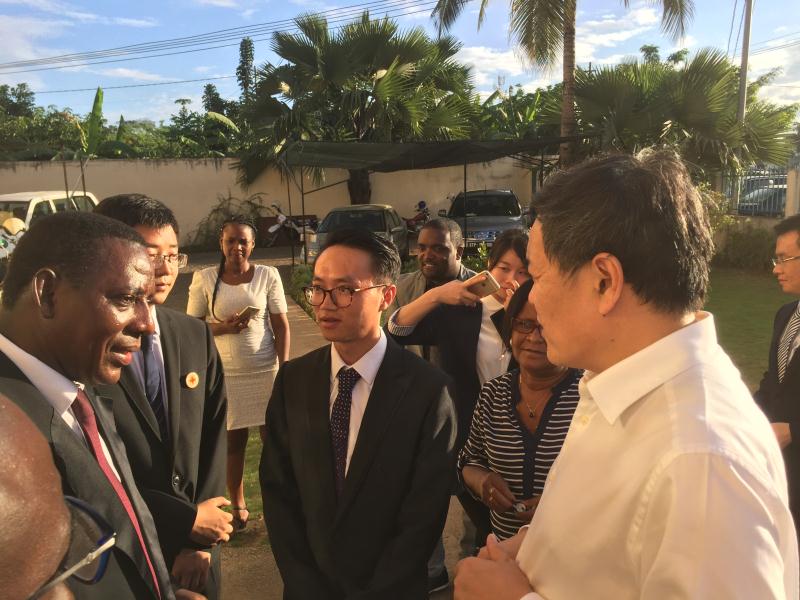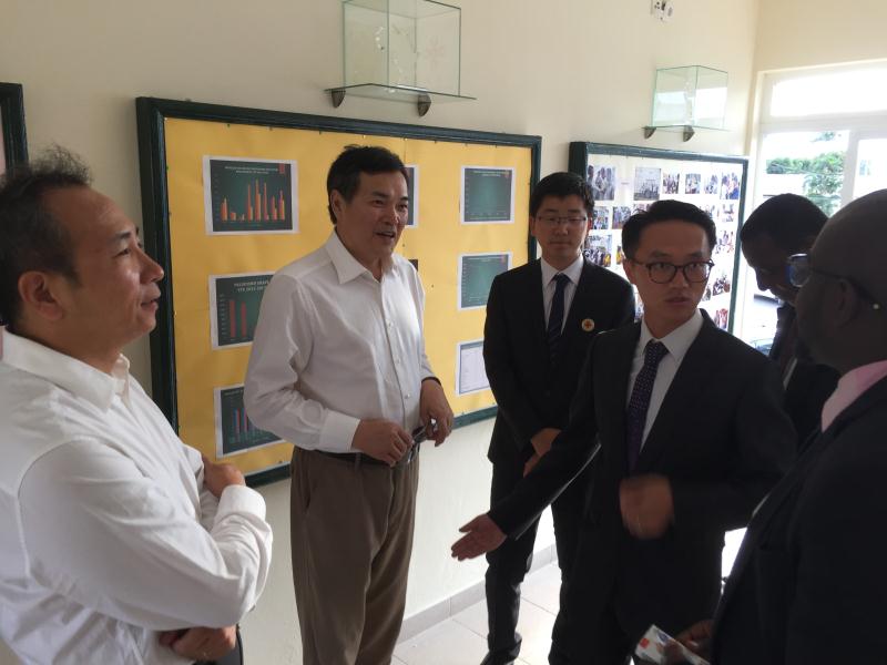 近日,中国商务部副部长钱克明率领代表团一行5人在中国驻圣普大使王卫陪同下前往圣普疾控中心视察援圣普疟疾防治顾问组工作。圣普疾控中心主任Carlos、圣普国家抗疟中心协调员Hamilton、中国援圣普疟疾防治顾问组全体人员全程陪同视察工作。