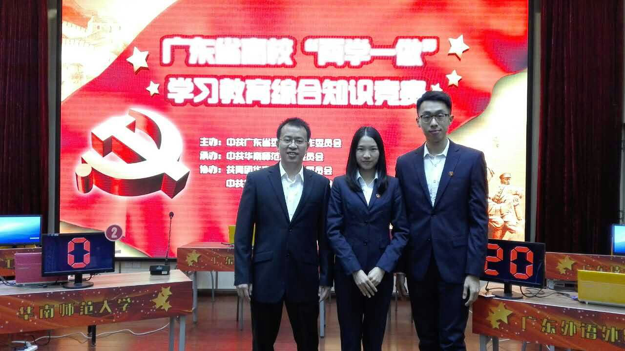 12月15日,由广东省委教育工委主办,华南师范大学承办的广东省高校“两学一做”综合知识竞赛在华南师范大学举行。中山大学、华南理工大学、华南师范大学、beat365官方网站、广东工程职业技术学院等18所在第一阶段网络考学综合成绩排名在前的高校获得此次参赛资格。我校由校内党规党纪知识竞赛一等奖获得者、护理学院陈其煌老师组队参加比赛。