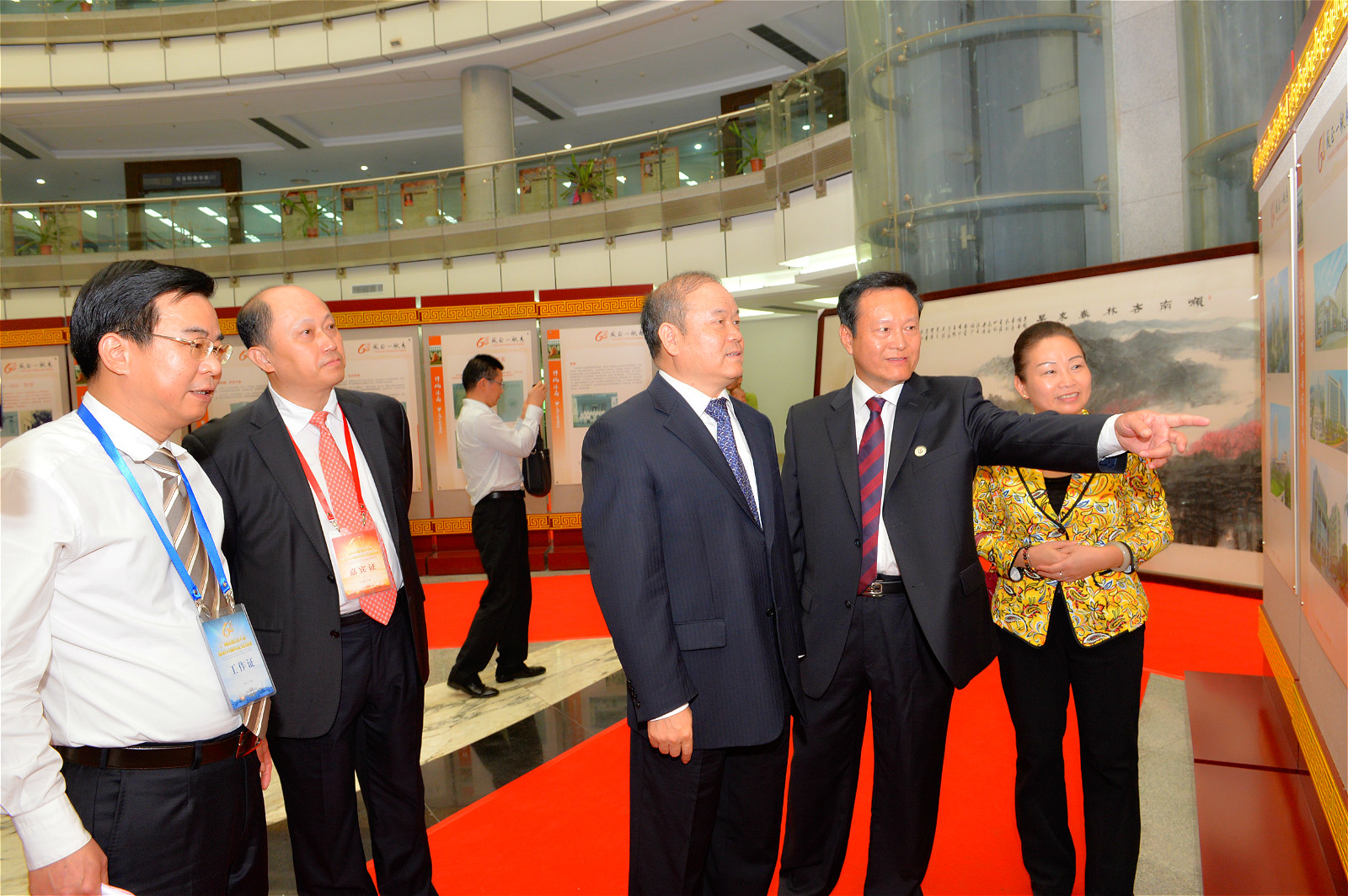 大会结束后,与会领导和嘉宾前往学校图书馆,饶有兴致地参观了建校六十周年成就展《风正一帆悬》。