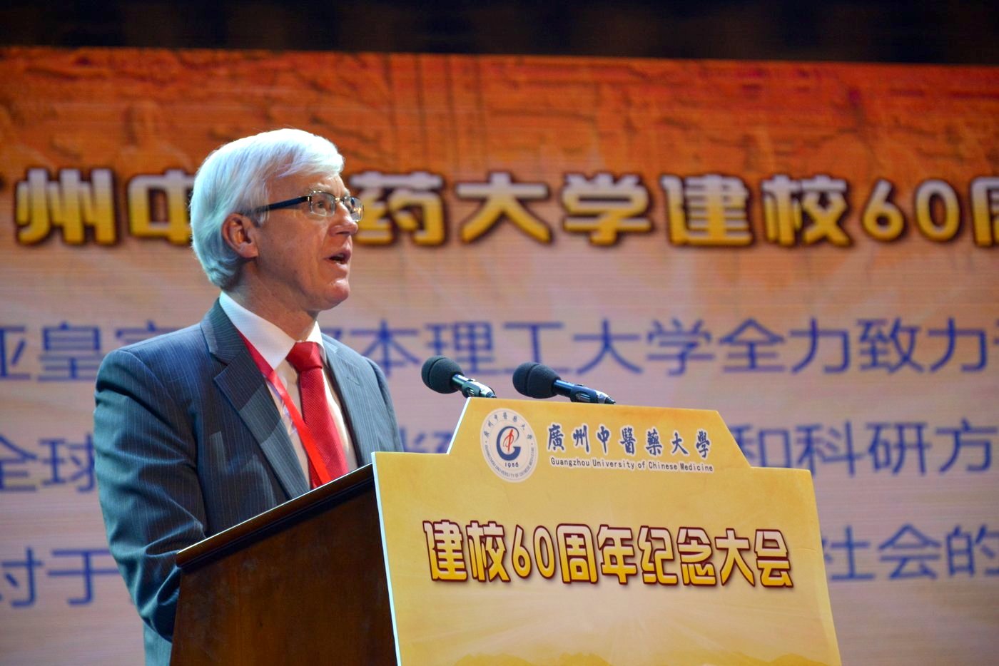 中国工程院院士、中国中医科学院院长、天津中医药大学校长张伯礼教授作为兄弟院校代表,广东省委宣传部常务副部长郑雁雄和澳门科技大学校长刘良作为校友代表,澳大利亚皇家墨尔本理工大学副校长 Peter Coloe作为国外大学代表分别在大会上致辞。