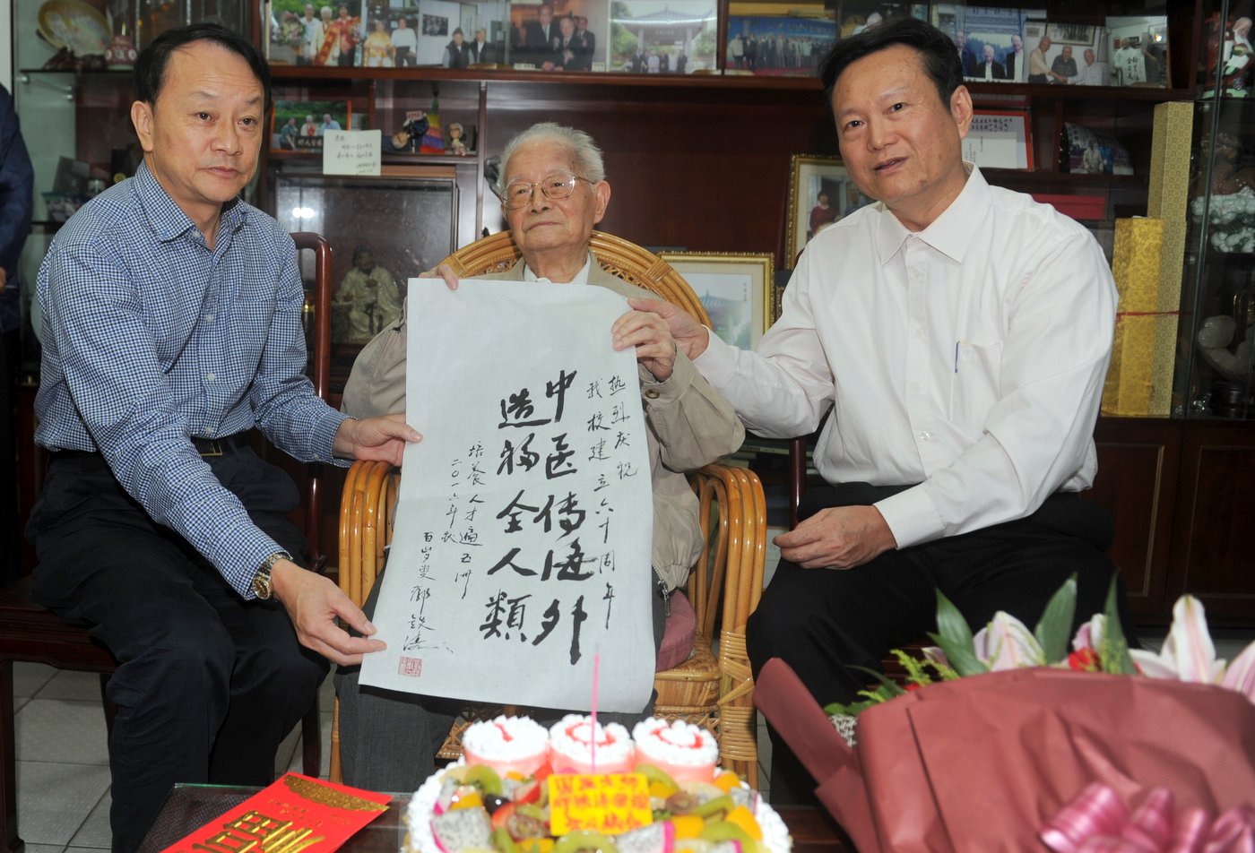 11月9日上午,学校党委书记黄斌、校长王省良来到中医泰斗、国医大师邓铁涛教授家中为他庆祝101岁大寿,代表学校及全校师生送上生日蛋糕和鲜花,祝福邓老生日快乐、健康长寿。