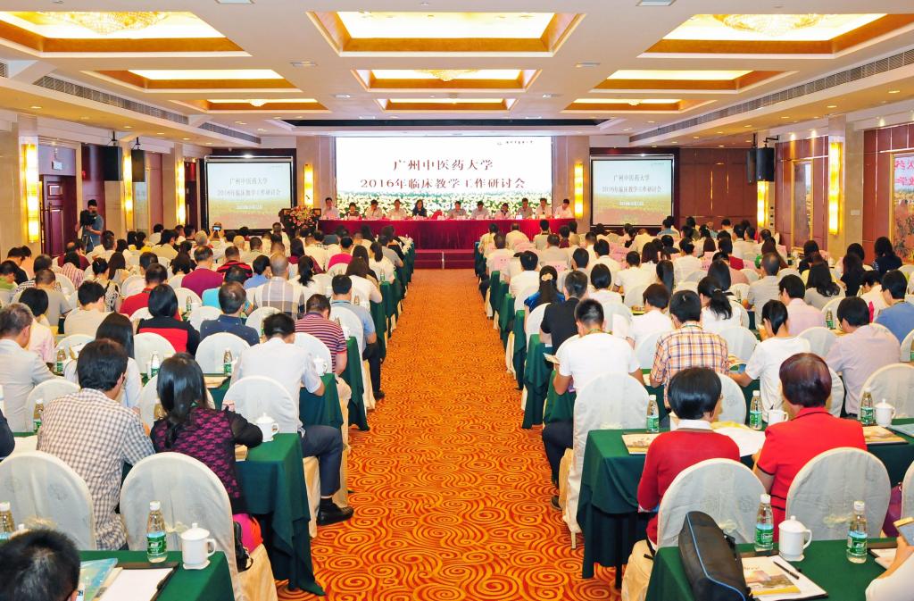 10月13至14日,我校主办、附属广州中西医结合医院承办的2016年临床教学工作研讨会在广州花都召开。会议以“深化医教协同机制,提高人才培养质量”为主题,专题研讨医教协同背景下的临床教学工作。党委书记黄斌、校长王省良和副校长许能贵、潘华峰,有关职能部门、二级学院负责人以及来自85个临床教学基地的代表共240多人参加了会议。广东省教育厅高教处处长郑文、广东省中医药局科教处处长陈铁宏、广州市卫计局中医处处长杨克彬、广州市花都区人民政府副区长李荣渝、广州市花都区卫计局党委书记、局长曹扬等领导应邀出席开幕式。