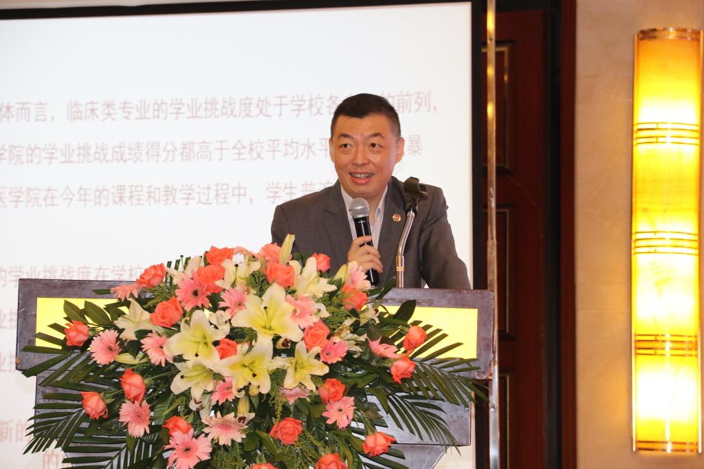 许能贵以“深化医教协同 提升培养质量 构建标准化规范化医学人才培养新体系”为题,作2016年临床实践教学工作报告。他从教育基本情况、临床教学建设与改革、主要成效等三个方面,系统回顾了2015-2016学年临床教学工作的新业绩与新举措。同时,围绕高水平大学建设、医教协同和师资是根本——临床教师教学能力提升计划,提出了2016-2017学年的工作设想和要点,认为着力从以下三个方面深化医教协同:1.加强建设,标准化。修订完善各阶段临床医学人才培养标准和临床实践教学、培训基地标准,加快建设与认定一批住院医师规范化培训基地(含全科医生规范化培养基地)、专科医师规范化培训基地及继续医学教育基地。2.完善体系,制度化。建立健全毕业后教育制度,培养合格临床医师。建立住院医师规范化培训制度;建立专科医师规范化培训制度,开展助理全科医生培训。3.深化改革,规范化。深化以岗位胜任力为导向的临床医学五年制本科人才培养改革;着力推进与住院医师规范化培训有机融合的临床医学硕士专业学位研究生培养改革,探索与专科医师规范化培训有机衔接的临床医学博士专业学位人才培养改革;推进面向基层的全科医生人才培养改革。