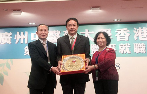 为庆祝母校60华诞,beat365官方网站香港校友会于9月18日晚在香港举行第十一届理监事就职典礼,并牵头组织广州、北京、上海、成都四所中医老校的香港校友会举办了以“从香江起步,与母校同行”为主题的“在港校友共庆母校六十周年华诞联谊会”。我校在港校友三百多人及友好社团代表逾两百多参加了典礼及联谊会。校长王省良、副校长许能贵、国医大师禤国维应邀到会。北京中医药大学副校长王伟、上海中医药大学副校长何星海、成都中医药大学彭成均代表学校到场祝贺。