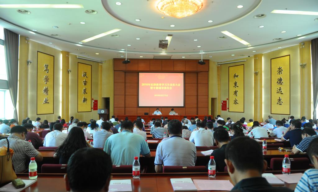 黄斌就如何开展好纪律教育学习月活动强调了五点意见:一是严字当头,增强实行党的纪律的自觉性;二是固本培元,加强思想政治建设;三是激浊扬清,为党增添正能量;四是不忘初心,做“四讲四有”合格党员;五是以教促改,注重实效。黄斌强调,全面从严治党,深入推进党风廉政建设和反腐败斗争责任重大,任务艰巨。我们要坚决贯彻落实习近平总书记重要讲话精神,学好党章党规党纪,持之以恒加强纪律教育和作风建设,坚持和发扬党的优良传统和作风,着力增强抵御风险和拒腐防变能力,为加强党的建设和学校改革发展事业做出自己应有的贡献!