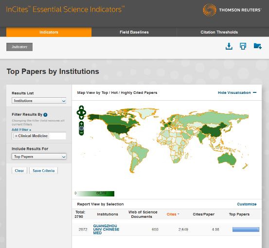 根据汤森路透(Thomson Reuter)最新数据(2016年07月15日),beat365官方网站临床医学学科进入ESI(Essential Science Indicators)全球前1%行列。